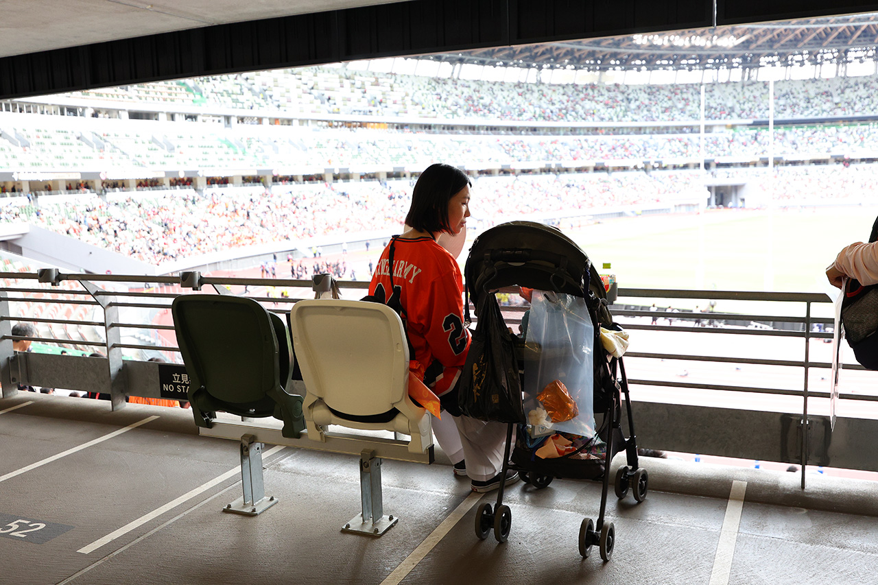 MUFGスタジアム(国立競技場)では既設の車いす席を活用し、ベビーカーを預けることなく、そのままご観戦いただけるエリアご用意しています。