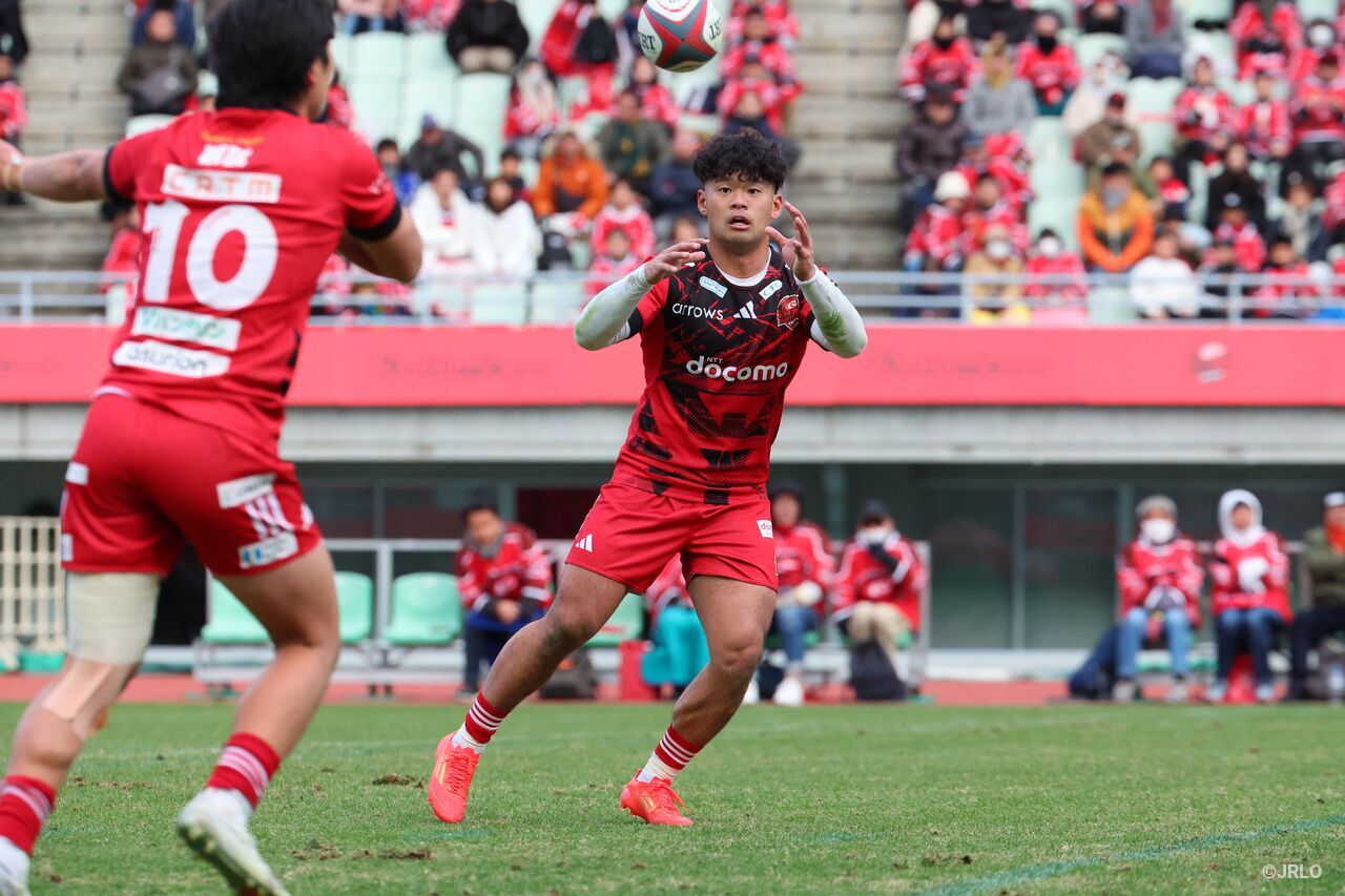 アーリーエントリーだった2023-24シーズンは、入社後の順位決定戦で2試合に出場した。昨季は、リーグ戦14試合すべてに出場。キック、ラン、ディフェンス、いずれも安定して良さが見えていたプレーは、「昨季よりもさらに向上した」(杉下)。