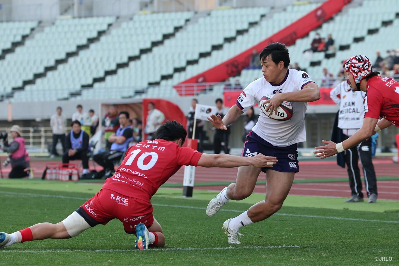 開幕4連勝と好調を維持する清水建設江東ブルーシャークス(以下、江東BS)において、ここまで唯一、全試合フル出場を続ける男がいる。尾﨑達洋だ。昨季も入替戦を含めて13試合に出場。185cmの恵まれた体躯を生かし、バックスの要として常にチームの最後尾に立ってきた。