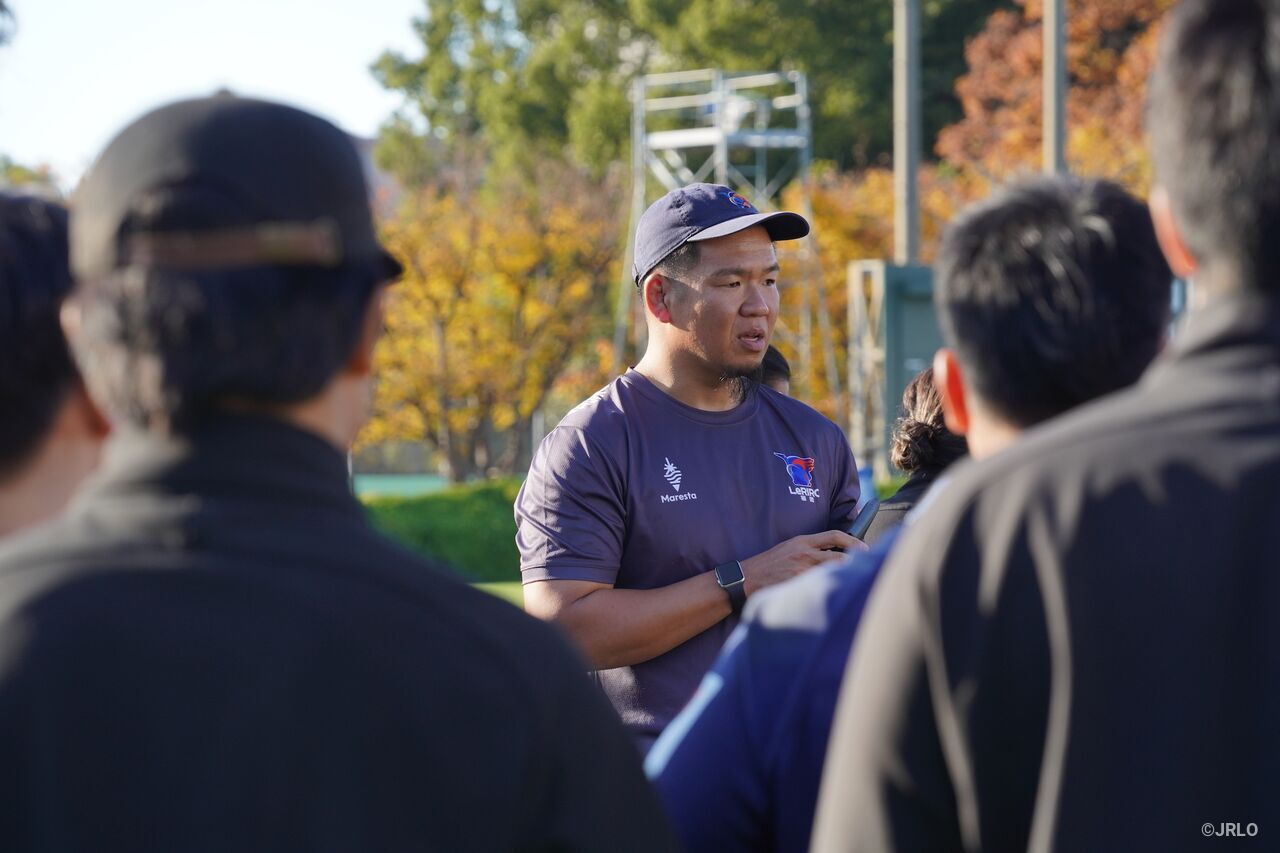ジャパンラグビー リーグワンのディビジョン3に参戦して2年目。ルリーロ福岡(以下、LR福岡)は今季も60名を超える選手が所属するリーグ一番の大所帯としてシーズンに挑む。ただ、その多くは日中フルタイムで働き、練習は日が落ちた19時から土のグラウンドから始まる。豪華な設備も潤沢なスタッフもいない。地域密着のクラブとして“あるもの”で戦い続ける。その最前線に立つのが豊田将万ヘッドコーチだ。