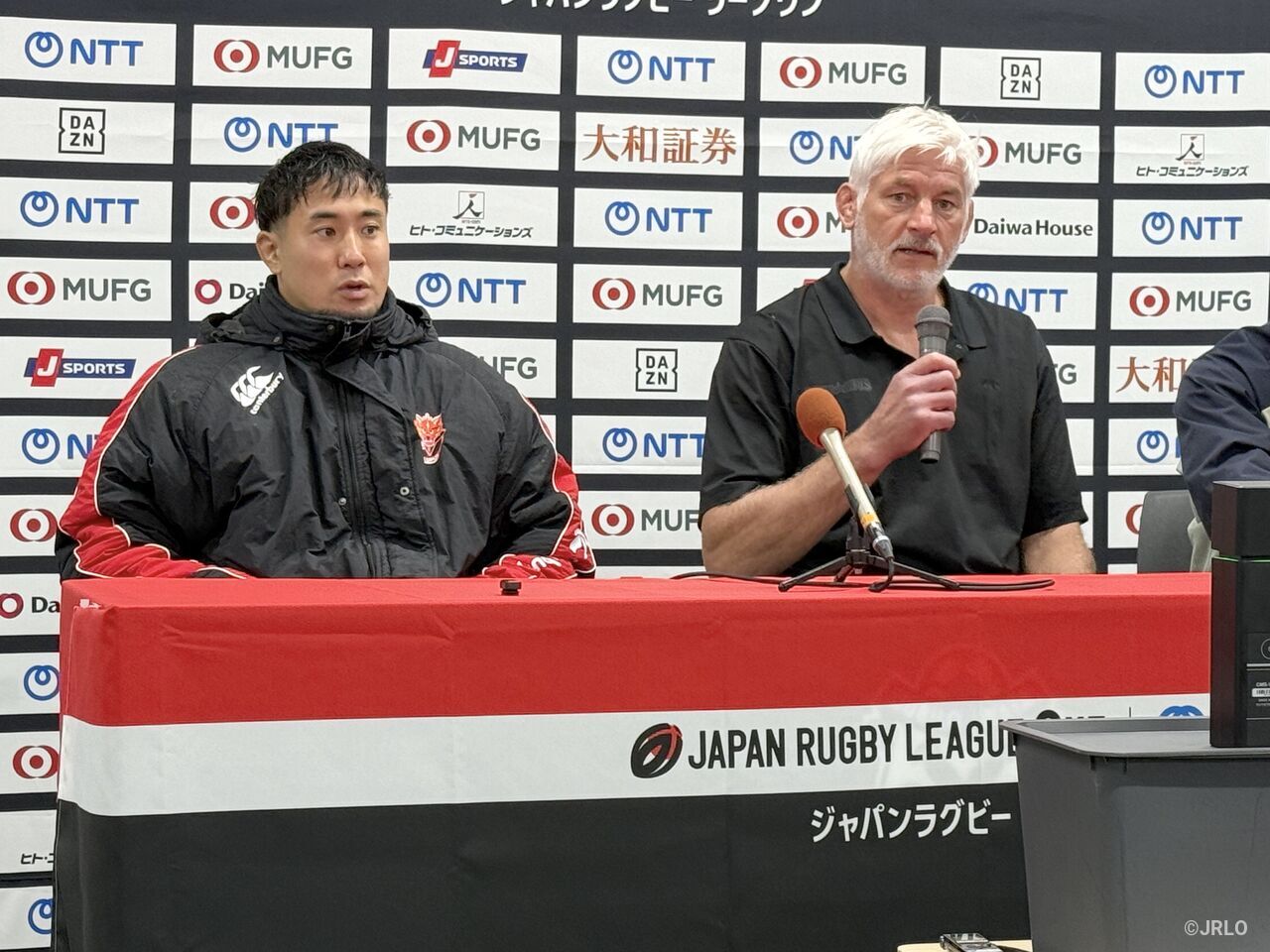 何より、若手が3人、リーグワンデビューを果たしました。チームとして勝利という形で彼らを迎えることができて非常にうれしく思っています。今日の学びとしては、試合の流れをつかんでいるときにどれだけ点を取って、試合の流れをつかめていないときにいかに踏ん張って流れを取り戻すかというところの重要さが、勝った中でもチームとして良い学びとして得られました」