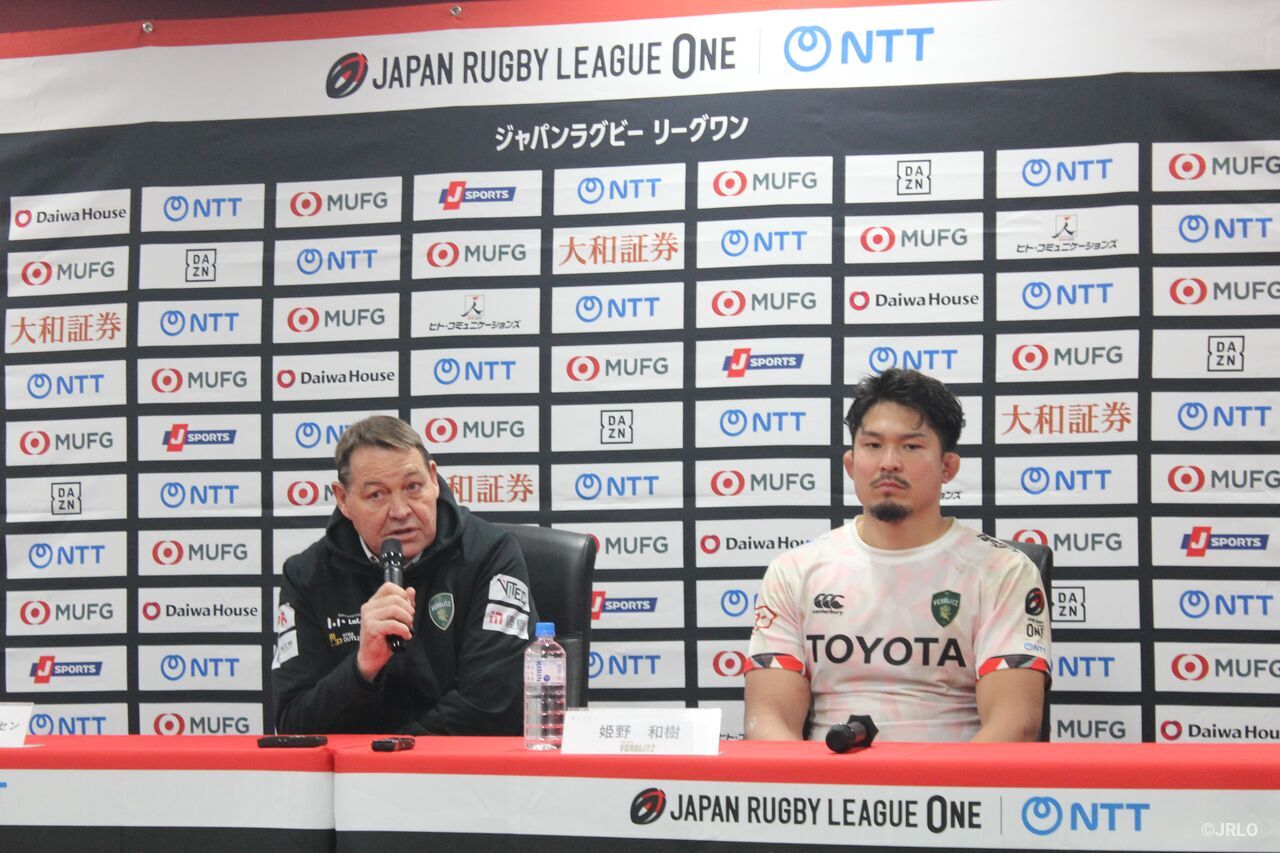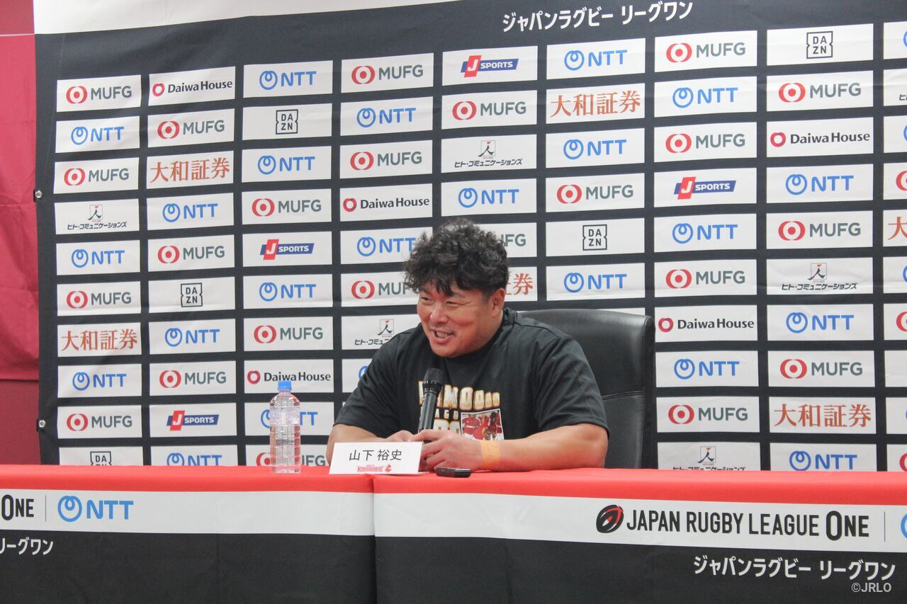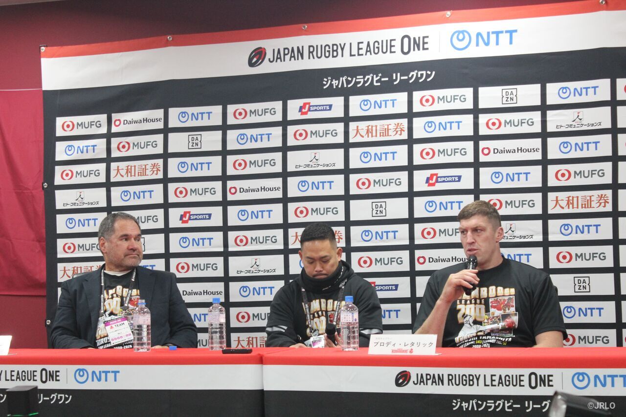 「結果に関してはハッピーです。セットピースは本当に素晴らしかったと思いますし、試合の長い時間、いいディフェンスもできたと思います。スキルのクオリティーや状況判断の精度の高さ、チャンスをたくさん作ってトヨタヴェルブリッツ(以下、トヨタV)さんにプレッシャーを掛けることはできたと思います。相手陣に入ったときには丁寧にフィニッシュすることができたと思います。ただ、試合終盤に関しては正直残念です。トヨタVさんに対してポゼッション、そしてトライも与えてしまったと思っています。ただ、全体を振り返ったときに、結果に関してはハッピーです」