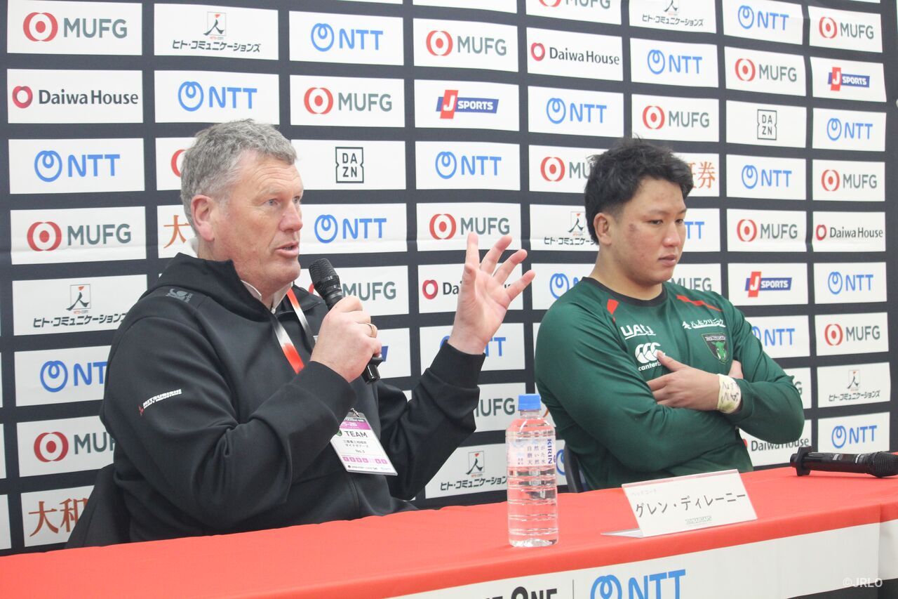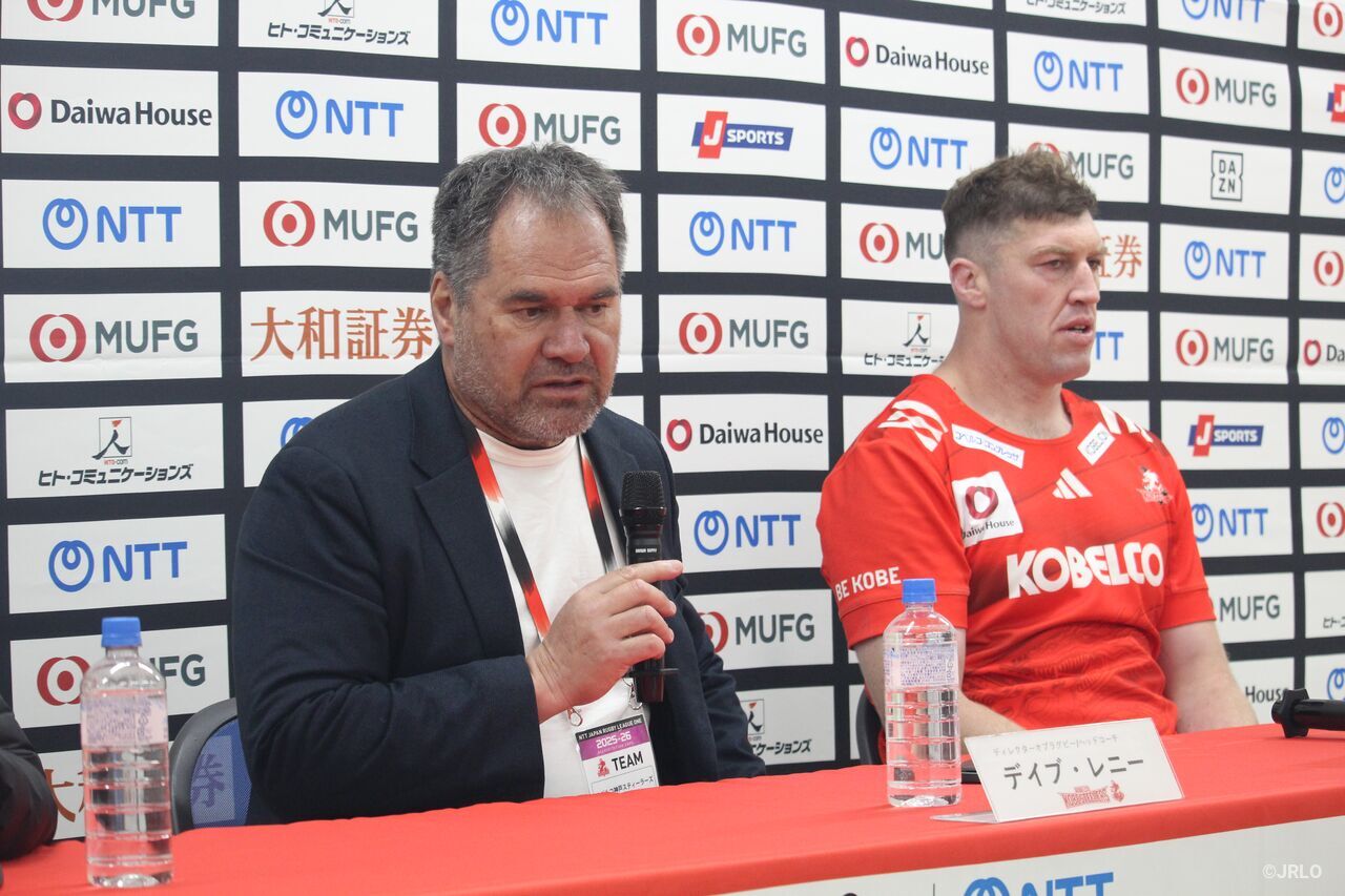 「後半を見ていただければ、われわれが本来、前半からやりたかったことをお見せできたと思います。コベルコ神戸スティーラーズさんが素晴らしいプレーをして、アタックでもディフェンスでもわれわれにプレッシャーを掛けてきました。自分たちがプレッシャーを受ける中で、スキルの精度も落ちてしまい、自分たちの首を絞めるところもあったと思います。自分たちのやりたいことや、自分たちのテンポ、スピードでできなかったところがありました。後半にできたプレーが試合をとおしてわれわれがやりたかったプレーです」