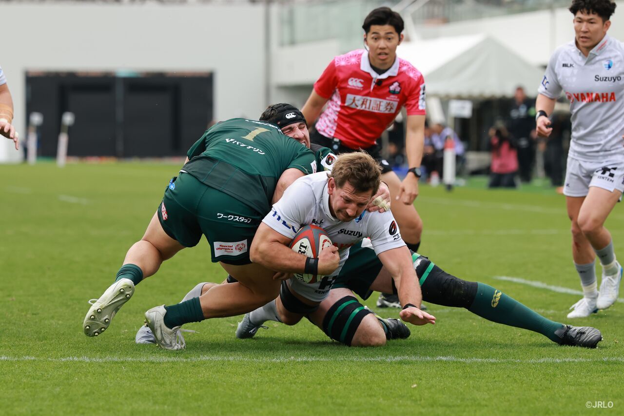 最後も静岡BRは守備で魅せた。10点差でホーンが鳴り6試合ぶりの勝利は確定したが、ラストプレーで相手に押し込まれトライライン前にくぎ付けとなる。それでも、姫野和樹のグラウンディングに対して3人が飛び込みトライを阻止。プレーオフトーナメント進出を狙うライバルに勝ち点1を与えず、順位表でもトヨタVを勝ち点1上回り7位に上がった。