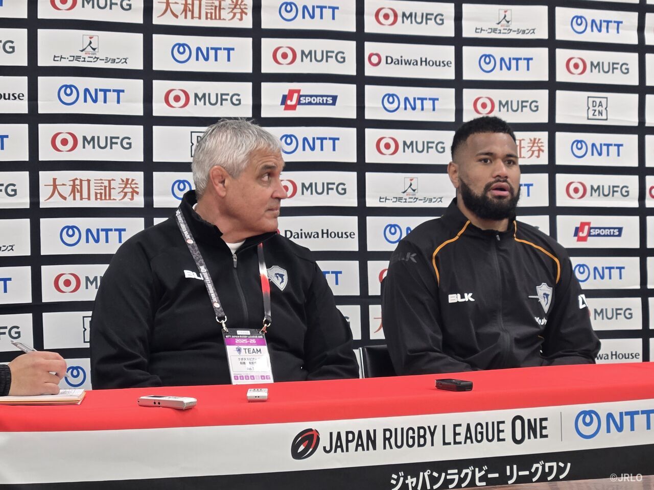 「まずは勝利できたことを大変うれしく思います。選手がいつもやっていることですが、今週もハードワークをしてくれました。特に相手は体が大きく強いチームであるので、フィジカルの点でステップアップしないといけない試合であることは分かっており、バックスも非常に強い選手をそろえているチームです。そういったチームに対して、自分たちがやってきた準備を誇りに思います。プレシーズンをとおして選手がやってきたハードワークがようやく形になってきました。また、今日の試合ではボーナスポイントを得ることもできました。そういったものから、自分たちの信念と自信を持って次に進んでいきたいと思います」