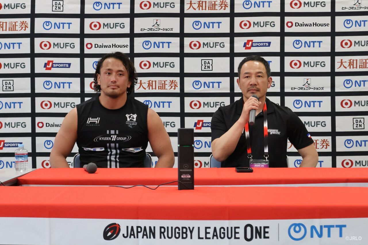 「本日はみなさん、お越しいただきありがとうございます。本当に残念な結果でしたが、エラーの数が多かったこと、それから後半はペナルティの数も多かったと思います。九州電力キューデンヴォルテクス(以下、九州KV)さんが勝利にふさわしい試合を、私たちよりも良いラグビーを展開していたと思います」