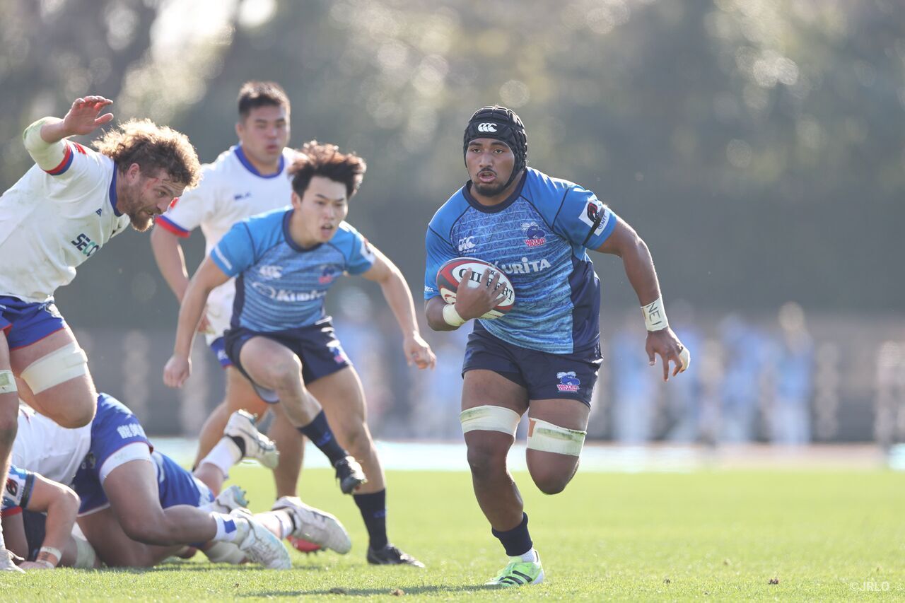 その瞬間は、前半30分に訪れた。クリタウォーターガッシュ昭島(以下、WG昭島)がラインアウトからテンポ良くフェーズを重ねると、最後にパパセーア・マテラウがボールを受けた。迷いなく前へ出ると、力強いボールキャリーでディフェンスを押し切り、そのままトライゾーンへ飛び込んだ。若き才能の現在地を示す、力強い一撃だった。