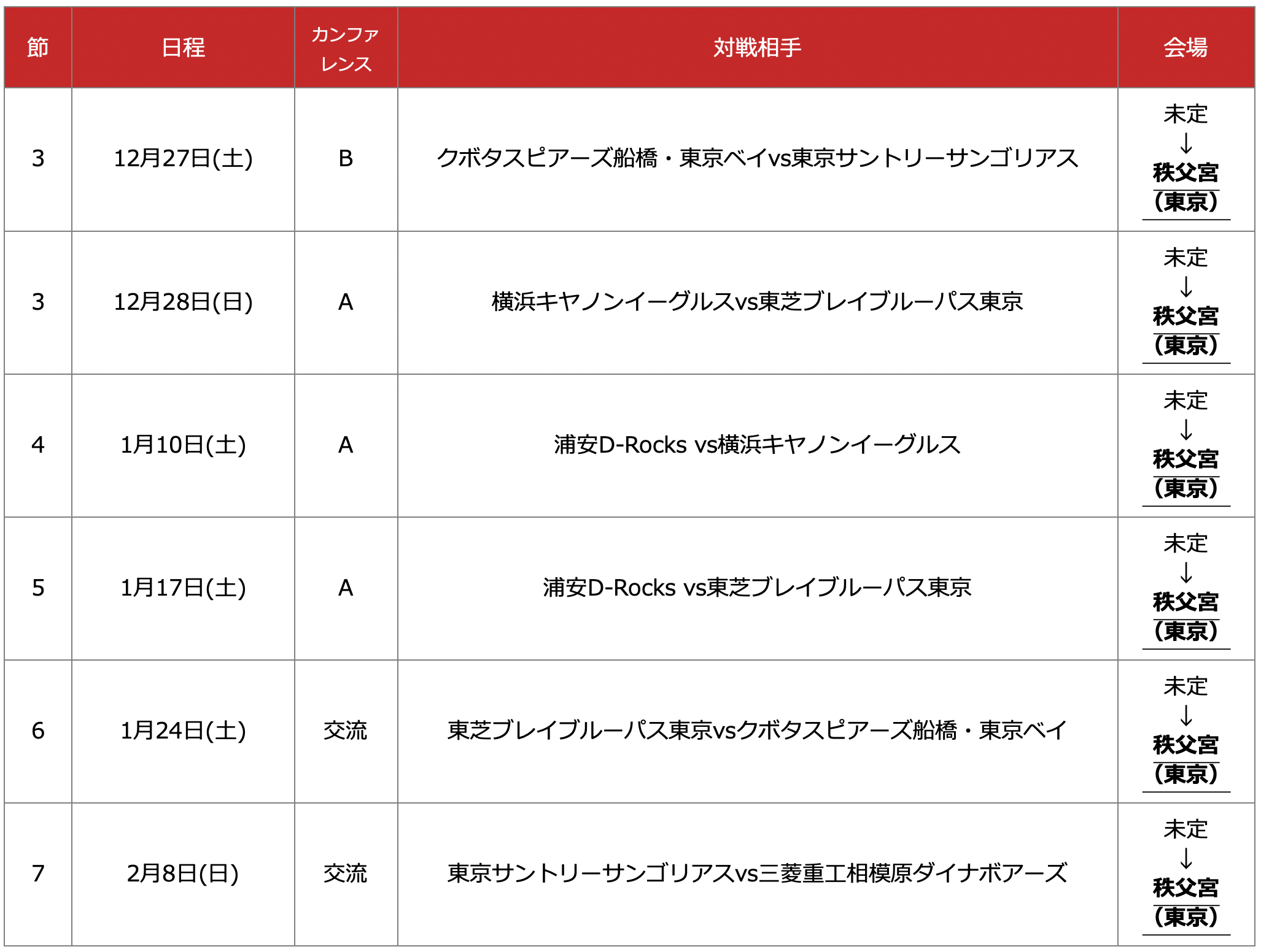 2025.09.02NTTジャパンラグビー リーグワン2025-26 一部試合日程および会場追加決定のお知らせお知らせ#ディビジョン1#ディビジョン3NTTジャパンラグビー リーグワン2025-26の試合日程および会場について、以下の通り追加決定がございましたので、お知らせいたします。試合日程および会場追加決定※以下、下線・太字が追加決定箇所■ディビジョン1※秩父宮:秩父宮ラグビー場※駒沢:駒沢オリンピック公園総合運動場陸上競技場■ディビジョン3※久留米陸:久留米総合スポーツセンター陸上競技場ニュース一覧