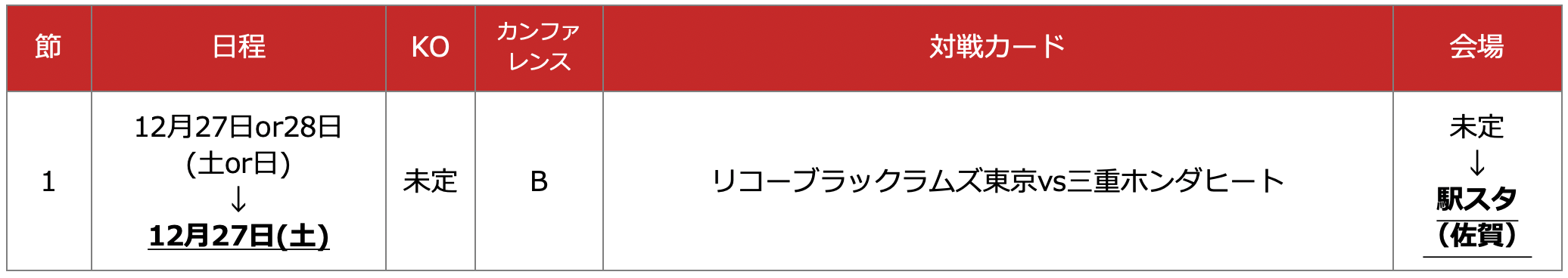 2025.09.17NTTジャパンラグビー リーグワン2025-26 一部試合日程および会場追加決定のお知らせお知らせ#ディビジョン1NTTジャパンラグビー リーグワン2025-26の試合日程および会場について、以下の通り追加決定がございましたので、お知らせいたします。なお、年内に開催される試合のキックオフ時間については10月上旬頃の発表を予定しています。試合日程および会場追加決定※以下、下線・太字が追加決定箇所■ディビジョン1※駅スタ:駅前不動産スタジアムニュース一覧