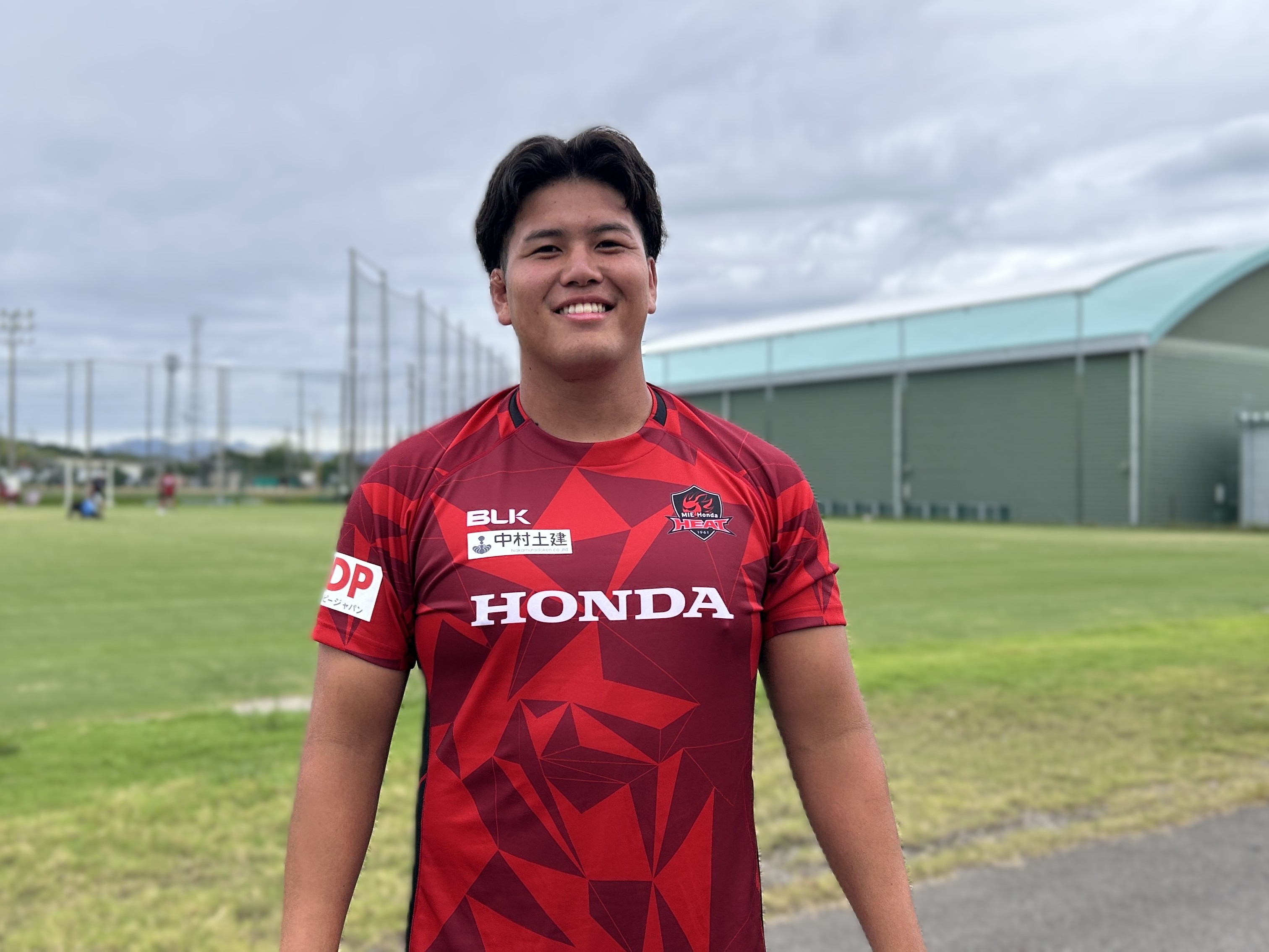 防衛大学校から加入した異色の選手。並々ならぬ決意で今季に挑むルーキーは、三重ホンダヒートを「ファンとの関係も含めてとても熱いチーム」と語る。岐阜県で生まれ、愛知県の中部大学春日丘高校でラグビーに打ち込んだ。昨季、練習生として出場したトレーニングマッチはトヨタヴェルブリッツ戦であり、リーグワンライジングの初戦もトヨタヴェルブリッツが相手。何かと縁深い相手との対戦を前に「高校の大先輩である姫野和樹選手がいるチーム。なんとか勝ちたいです」と並々ならぬ情熱を燃やす。