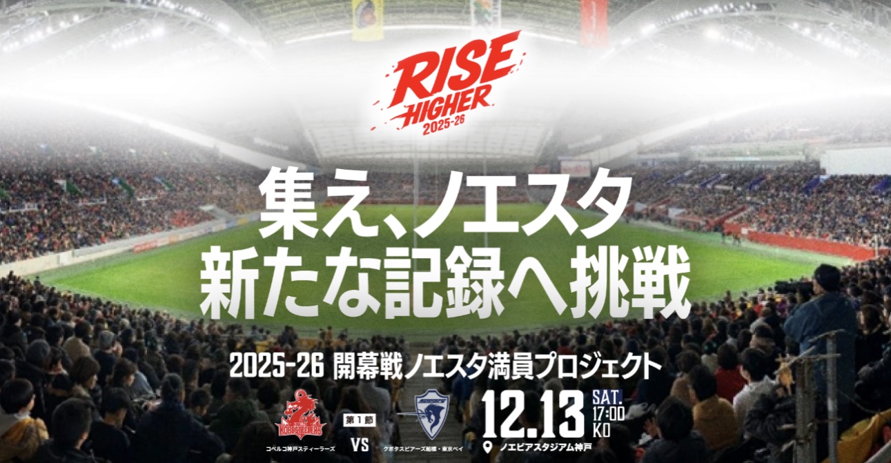 コベルコ神戸スティーラーズより、「2025-26開幕戦ノエスタ満員プロジェクト」について発表がありましたのでご紹介します。