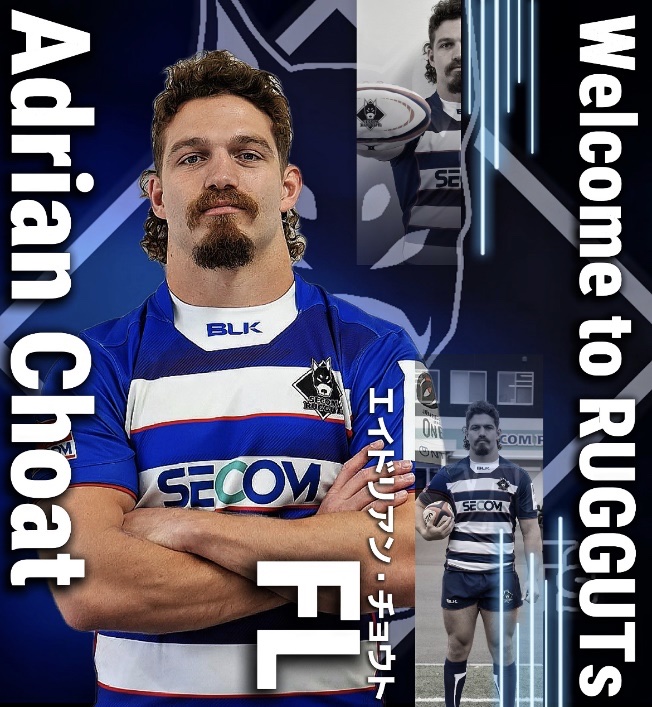 I’m Adrian Choat and I’m extremely grateful for the opportunity to play at Secom and experience Japanese Culture. It is my goal to help Secom achieve its goal of getting into Division 1.I look forward to getting stuck into some rugby and meeting all the Secom fans!