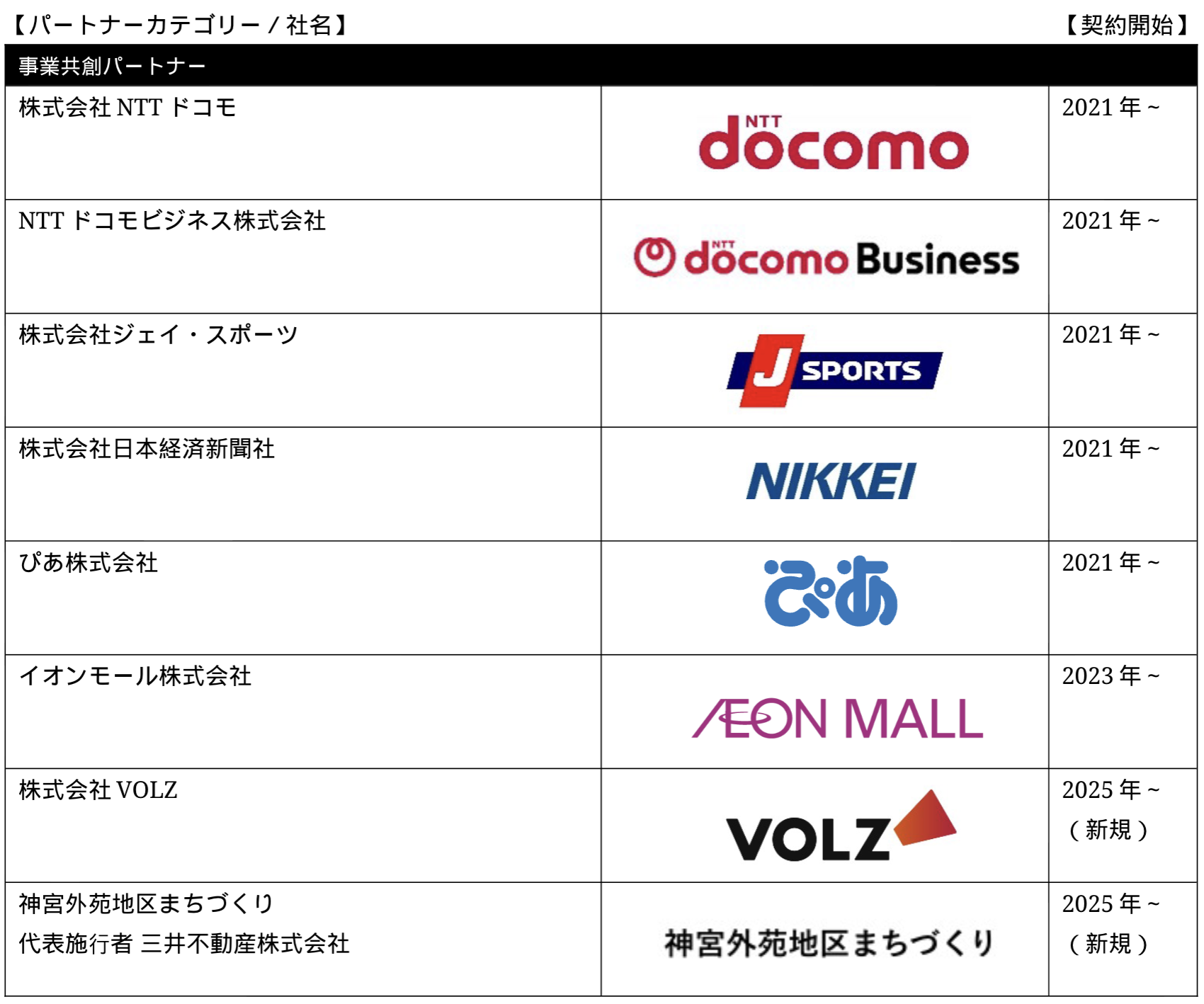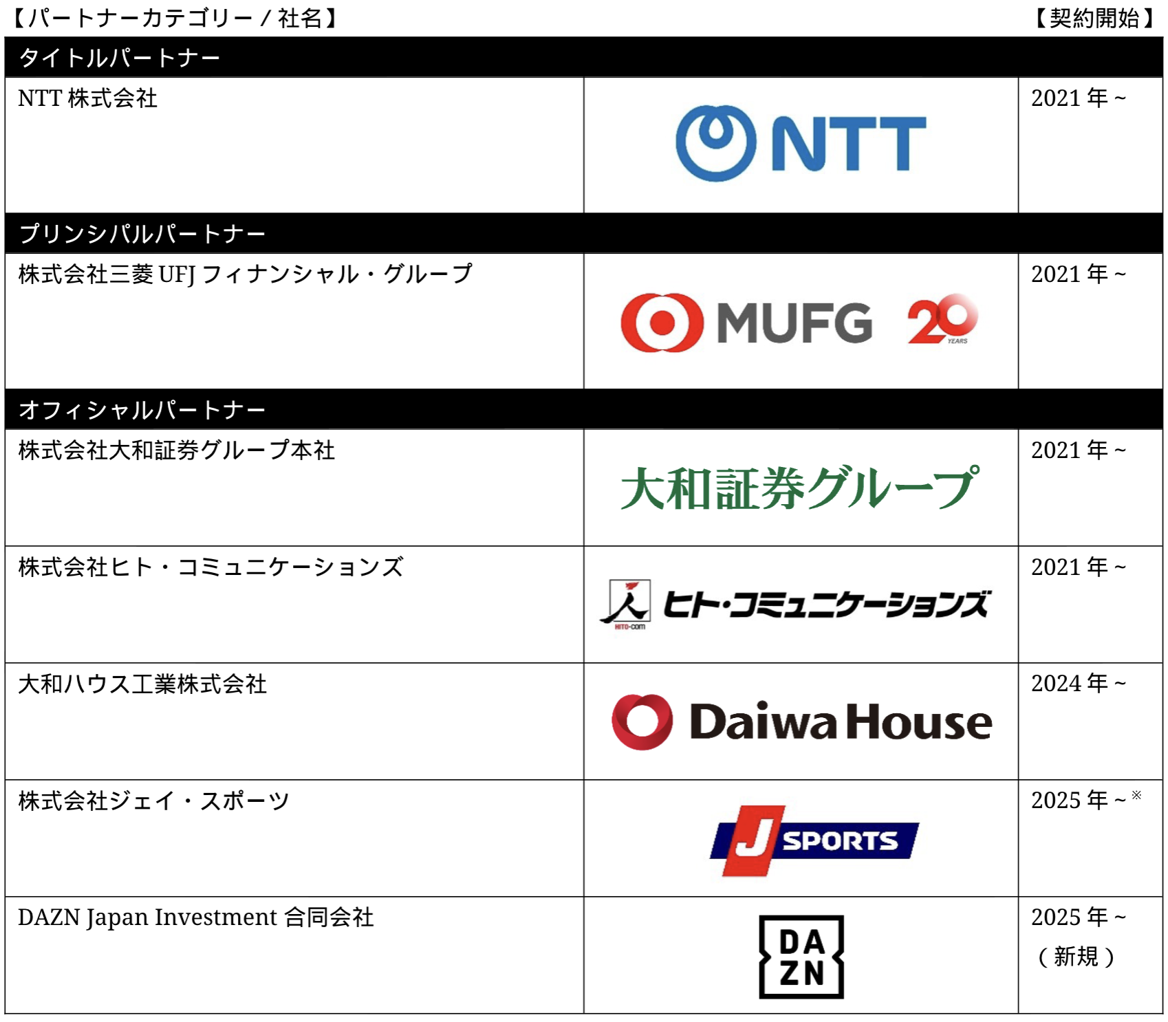 ※2025-26シーズンからオフィシャルパートナー契約も締結(それ以前は事業共創パートナー契約)