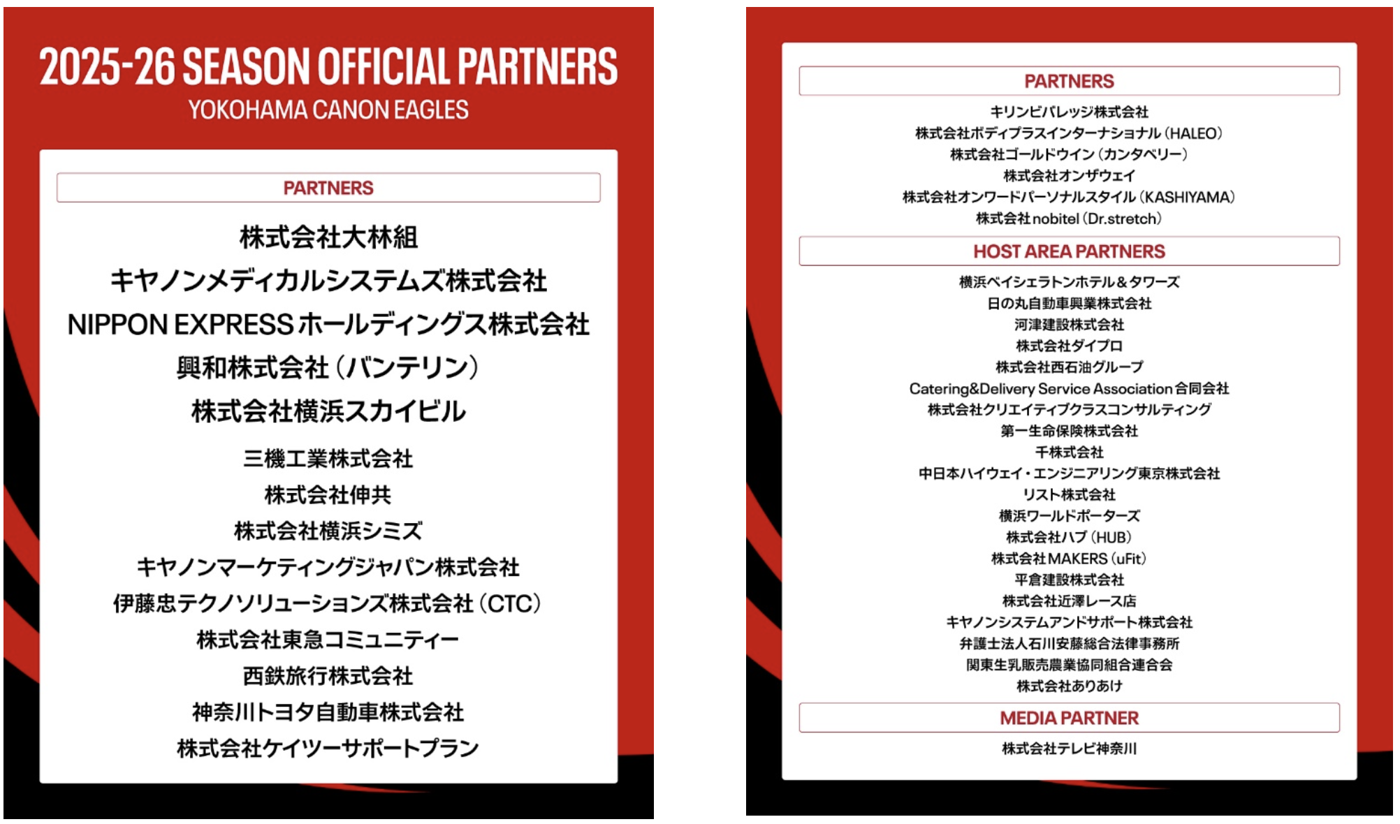 横浜キヤノンイーグルスは、2025年12月に開幕するNTTジャパンラグビーリーグワン2025-26シーズンのオフィシャルパートナーを以下の通り決定しましたのでお知らせいたします。