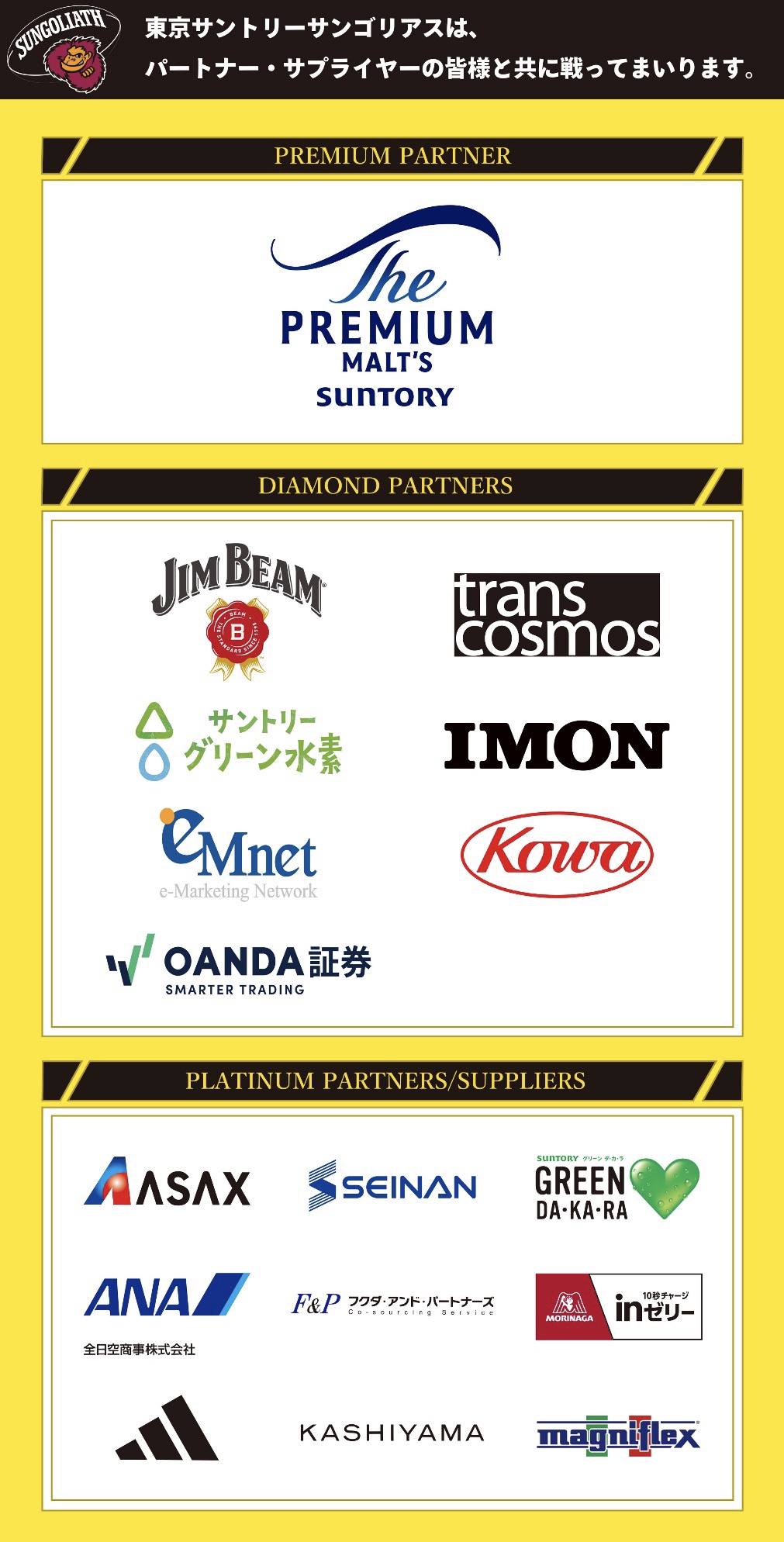 この度、東京サントリーサンゴリアスは、2025年12月13日に開幕するNTTジャパンラグビー リーグワン2025-26をともに戦うオフィシャルパートナーを以下の通りお知らせいたします。