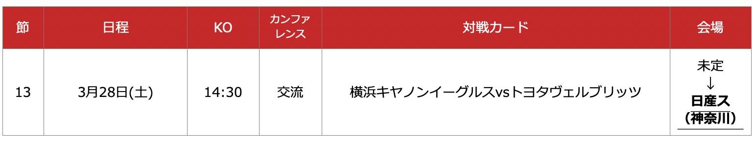 2025.12.14NTTジャパンラグビー リーグワン2025-26 一部試合会場追加決定のお知らせお知らせNTTジャパンラグビー リーグワン2025-26の試合会場について、以下の通り追加決定がございましたので、お知らせいたします。試合会場追加決定※以下、下線・太字が追加決定箇所■ディビジョン1※日産ス:日産スタジアムニュース一覧