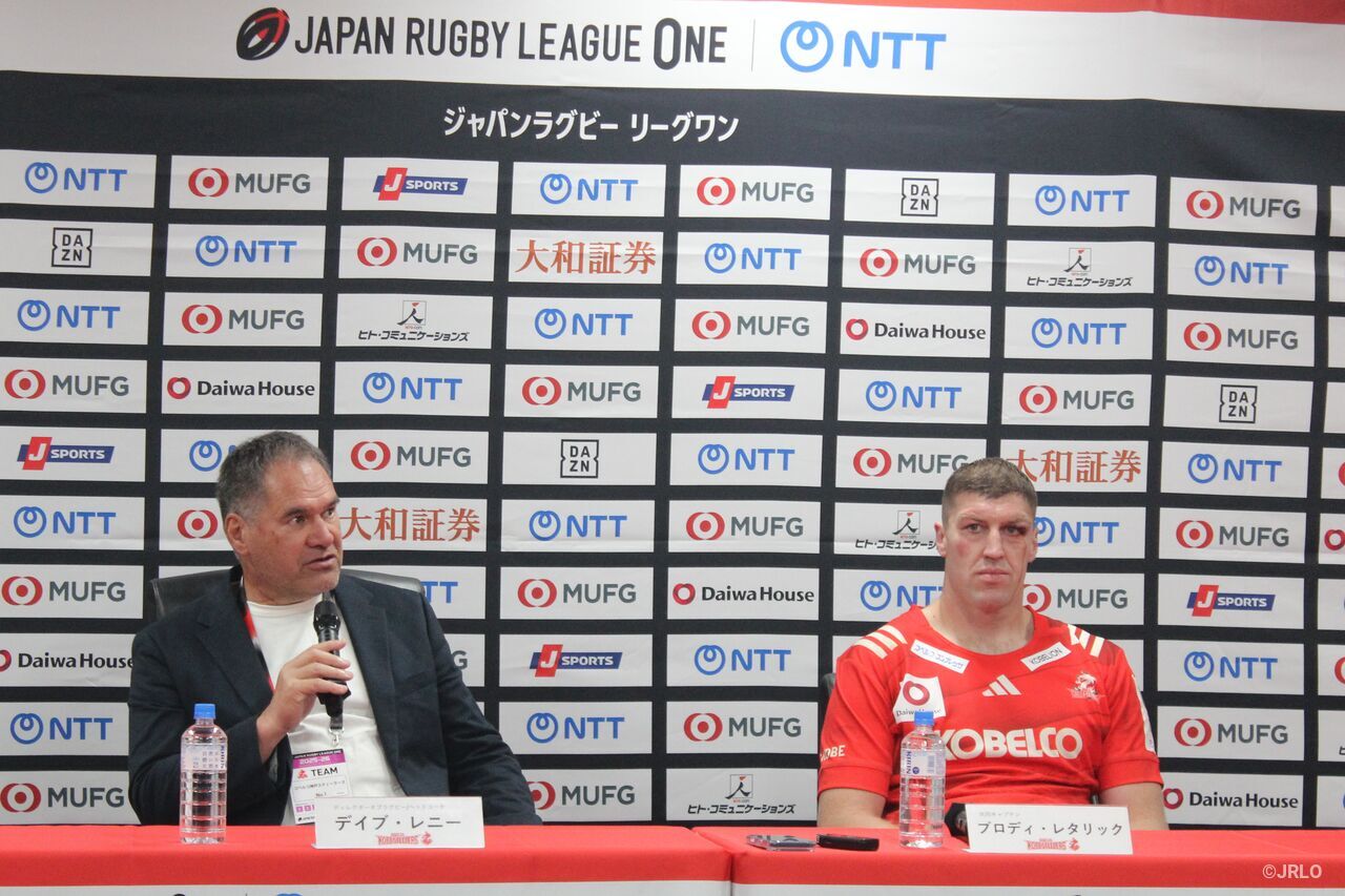 「ペナルティカウント自体に関しては、S東京ベイさんとわれわれ、おそらくほぼイーブンだったと思います。ただ、前半の後半部分に関しては、S東京ベイがペナルティの回数を重ねていくということが多かったと思います。(ブロディ・)レタリックの言うように、自分たちもソフトな、簡単なペナルティをあまりにも与え過ぎたと思います。ポゼッションもそうですし、ゲイン獲得率であったり、ターンオーバーの数であったり、そういうほかの内容もほとんどS東京ベイさんと正直、数字としては一緒だったと思います。なので、先ほど自分のメッセージの中で、アームレスリングのような試合になっていたと説明をさせてもらいました。ただ、自分たちが修正しなければならないのは大事な瞬間、キーモーメントでどれだけ自分たちが正しいパフォーマンスを出せるか。そこの部分で負けてしまったと思っています」