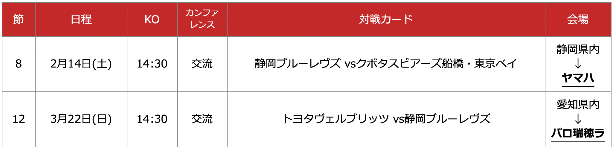 2025.12.26NTTジャパンラグビー リーグワン2025-26 一部試合会場追加決定のお知らせお知らせ#ディビジョン1NTTジャパンラグビー リーグワン2025-26の試合会場について、以下の通り追加決定がございましたので、お知らせいたします。試合日程および会場追加決定※以下、下線・太字が追加決定箇所■ディビジョン1※ヤマハ:ヤマハスタジアム※パロ瑞穂ラ:パロマ瑞穂ラグビー場ニュース一覧