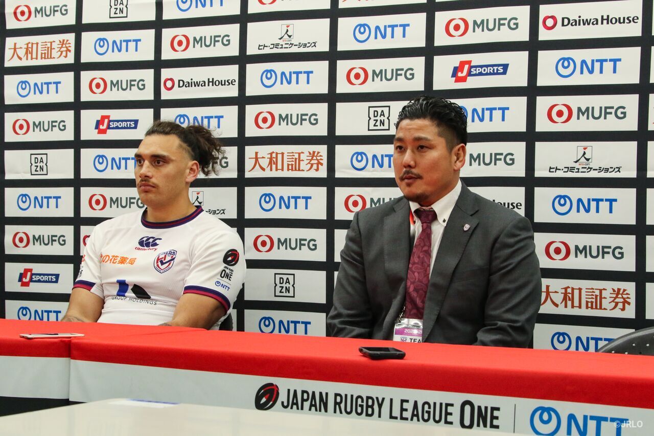 「はじめに、みなさん、お忙しい中お集まりいただき、ありがとうございます。また、本日は1万人以上の観客数でのビジターゲームでした。たくさんのお客さまを招いてくださったRH大阪さんはもちろんのこと、われわれのファンのみなさんも足を運んでいただき、この環境でラグビーができたことを非常にうれしく思います。