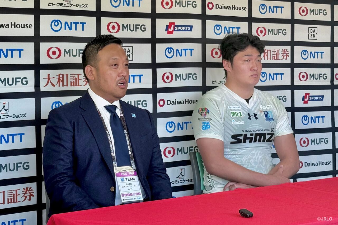 開幕4連勝は、おそらく清水建設江東ブルーシャークス史上初だと思います。シーズン前から『史上最強のチームだ』と言ってきましたが、まず現実として4連勝で花園近鉄ライナーズ(以下、花園L)に挑戦できるのは非常にうれしいです。ただ、ここがゴールではありません。まずは日野RDに勝利をするという目標を達成して、その次に、ディビジョン1昇格を目指している以上、次の目標に向けて明日からまた取り組んでいきたいと思います。本日はありがとうございました」