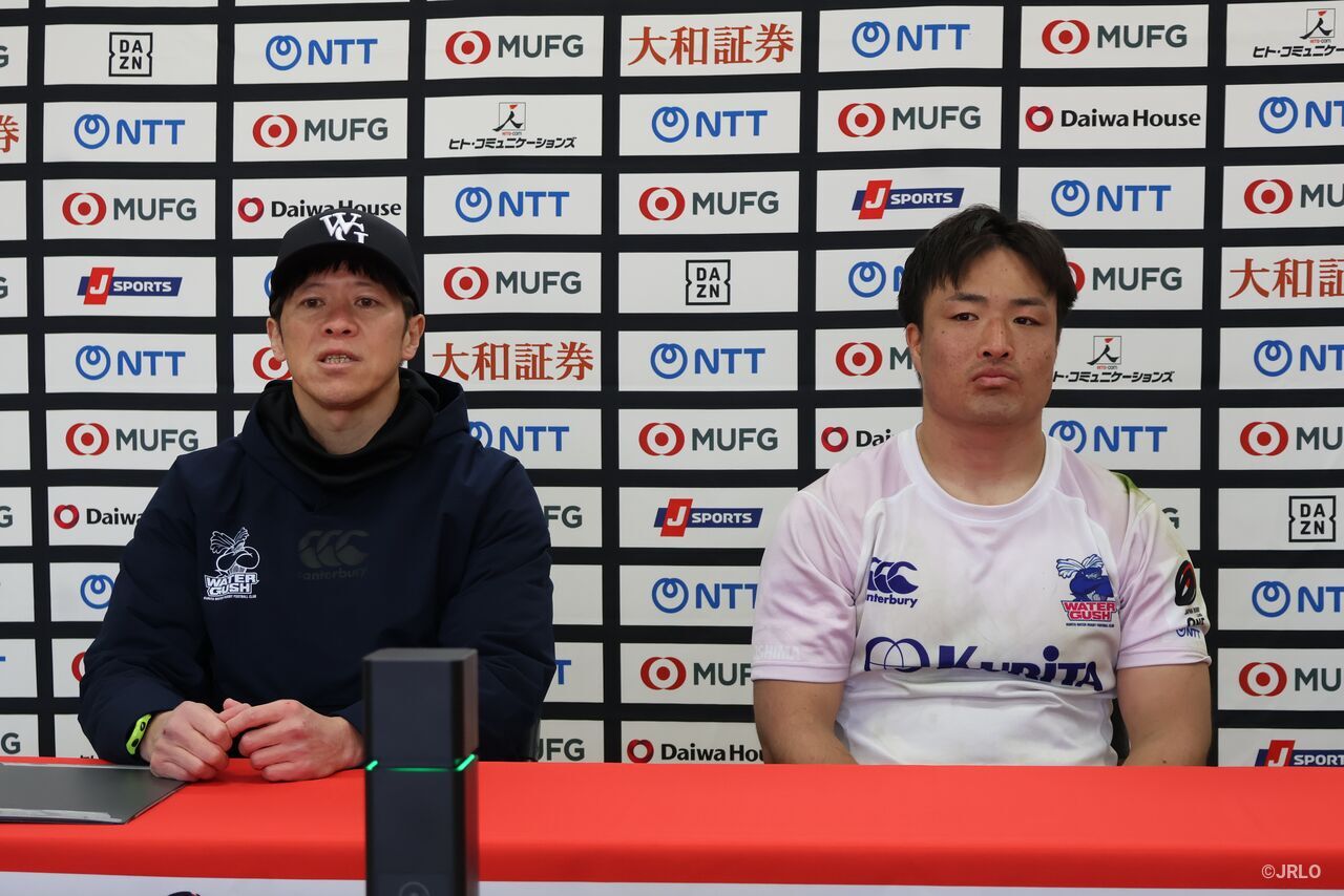 「本日は、大会関係者の皆さま、レフリーの皆さま、このような素晴らしいスタジアムで試合をさせていただきありがとうございました。われわれは、今回も負けてしまい、落ち込んでいるところはありますが、シーズンは続いていきます。いまの課題となっている前半の入り、ペナルティや規律のところをもう1回しっかりと見つめ直して、われわれの強みというのを出せるように、次の狭山セコムラガッツ戦に向けて準備をして臨んでいきたいと思います」
