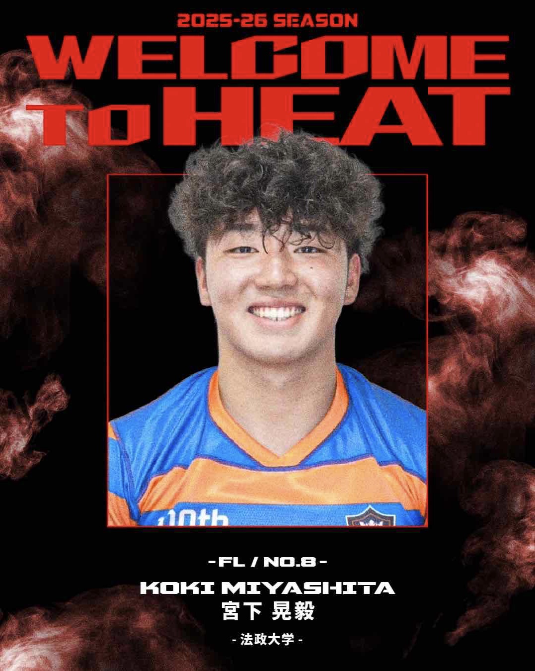 「この度、三重ホンダヒートに入団することとなりました、宮下晃毅です。ヒートの一員としてラグビーができることにワクワクしています。