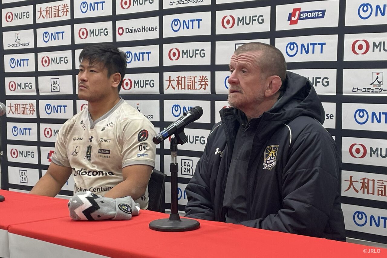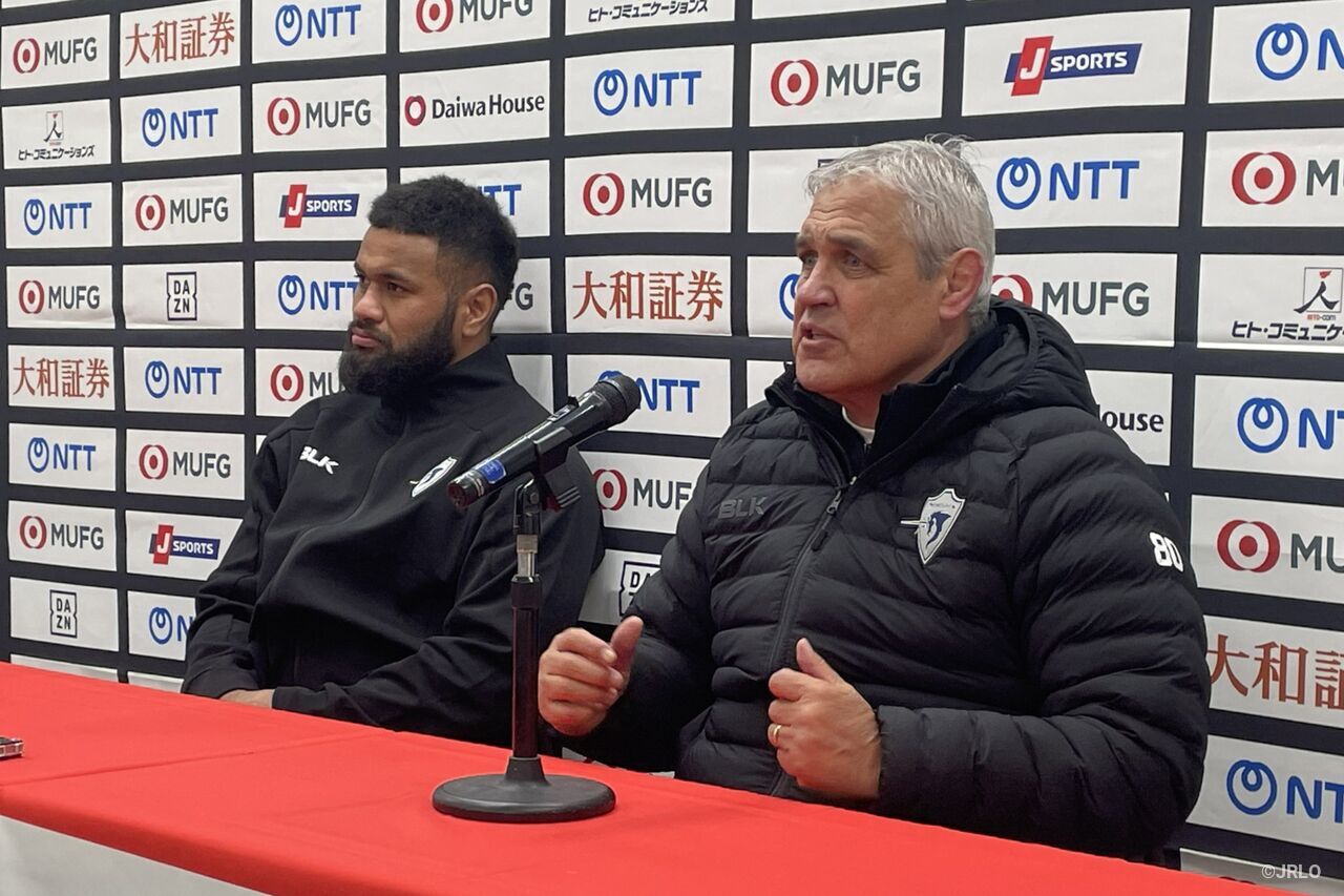 「非常にタフでフィジカルな試合でした。S東京ベイは昨シーズンのファイナリストであり、フォワードパックのフィジカルが非常に強く、この天候・コンディションをうまく利用してプレーしていました。ハーフタイムには『あきらめるな』と話しました。前半を終えて自分たちで高い壁を作ってしまいましたが、後半はそれを乗り越えようと試みました。試合の最後まで泥臭く、必死に戦い続けた選手たちを誇りに思います」