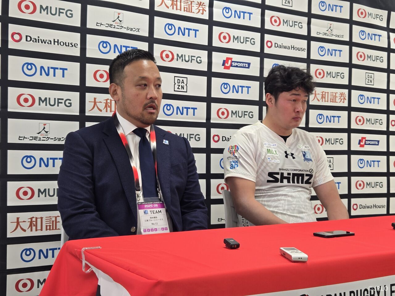 「まだ開幕してホストゲームで勝利がなかったという中でのホストゲームで、たくさんのファンの方々に応援いただきました。素晴らしい環境を作っていただいた関係者の皆さまに対して、チームを代表して御礼申し上げます。試合については、課題ももちろんありますが、今季の上位2チームに入っておられる清水建設江東ブルーシャークスさんを相手にしっかり勝ち点を取れたというところは、選手のこの1週間の準備と今日の努力に感謝したいと思っています。ありがとうございました」