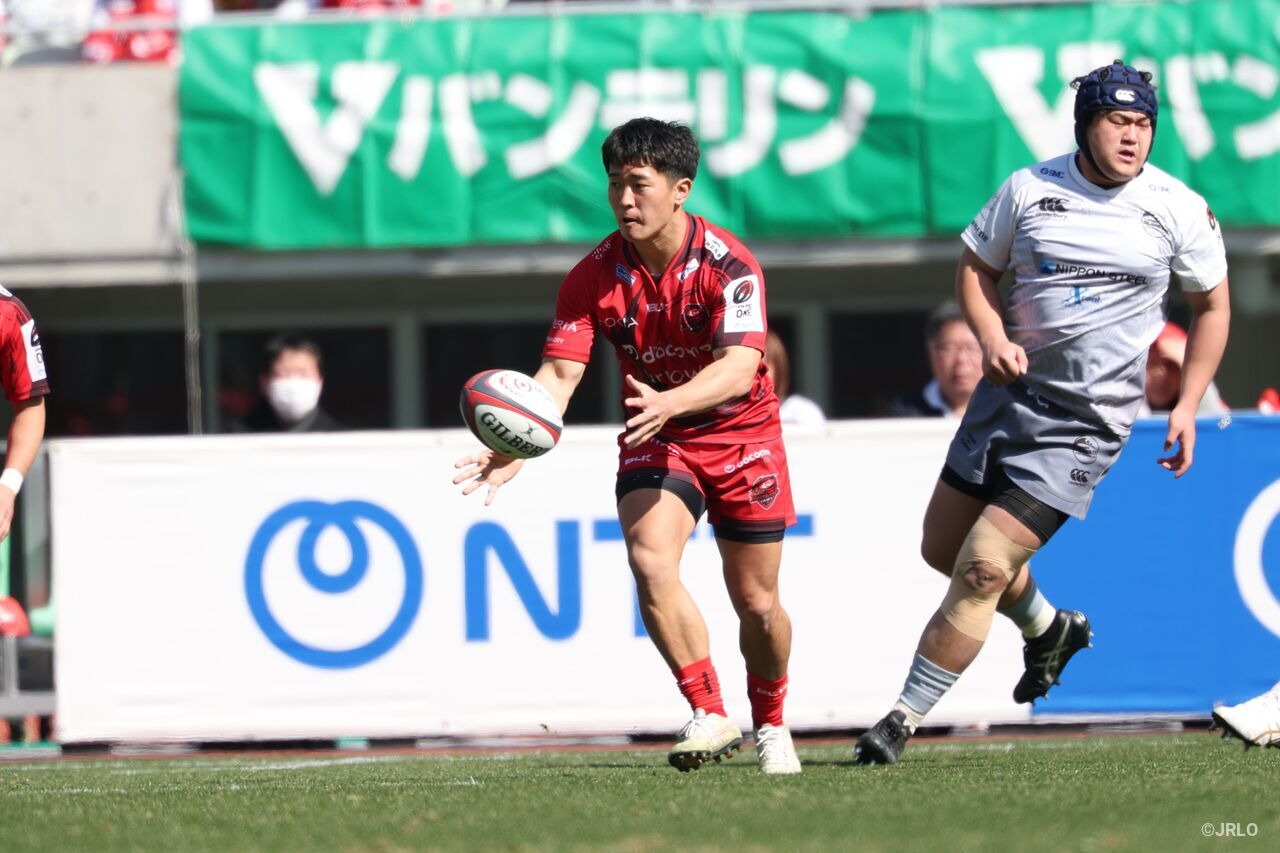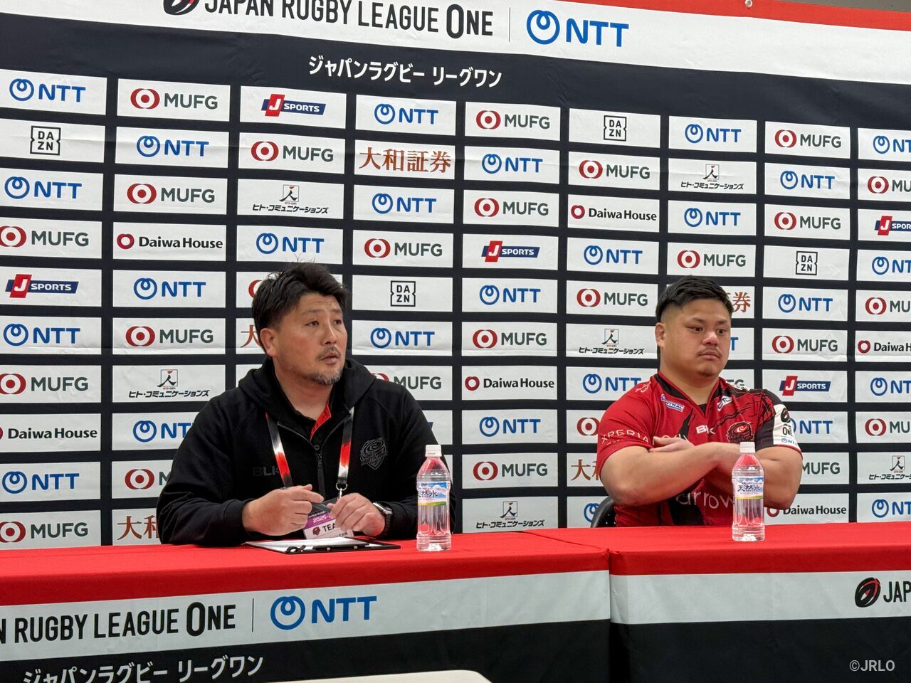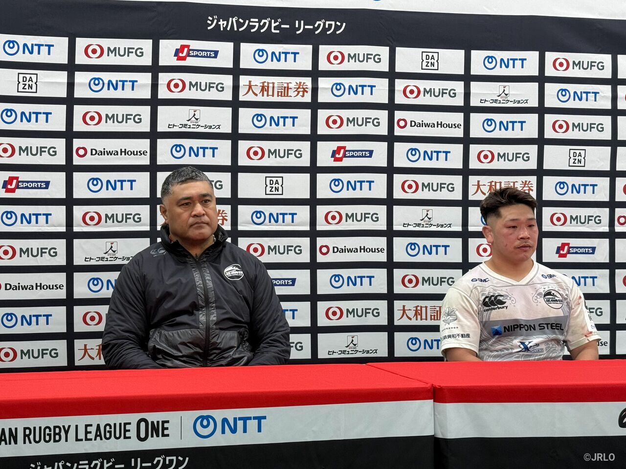 試合のほうは15対14の接戦となりました。日本製鉄釜石シーウェイブスさんのコリジョンの激しさやラインアウトのディフェンスのプレッシャーをとても感じ、思いどおりにできない時間帯も長くなりました。それでも最後まで粘り強く戦い、勝ち切れたことは良かったです。勝って反省できたことを次につなげていきます」