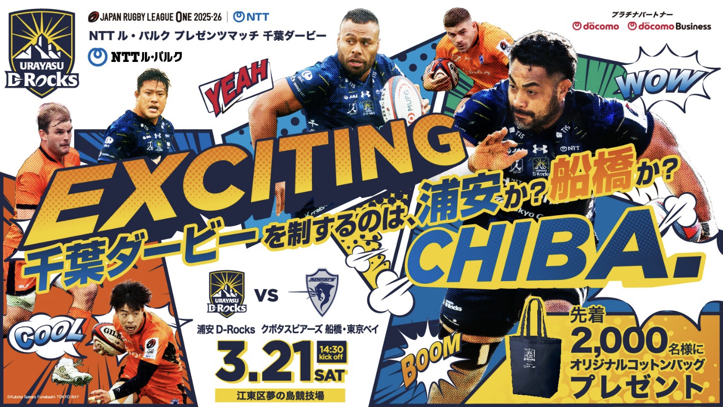 この度、NTT JAPAN RUGBY LEAGUE ONE 2025-26 DIVISION 1第12節クボタスピアーズ船橋・東京ベイ戦において、株式会社エヌ・ティ・ティ・ル・パルク(本社:東京都台東区、代表取締役社長:大坪 達哉)がマッチパートナーとなり、当日は“NTTル・パルク プレゼンツマッチ 千葉ダービー”として開催することに決定いたしました。