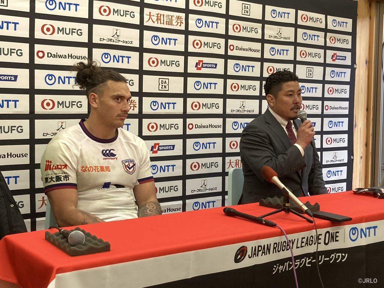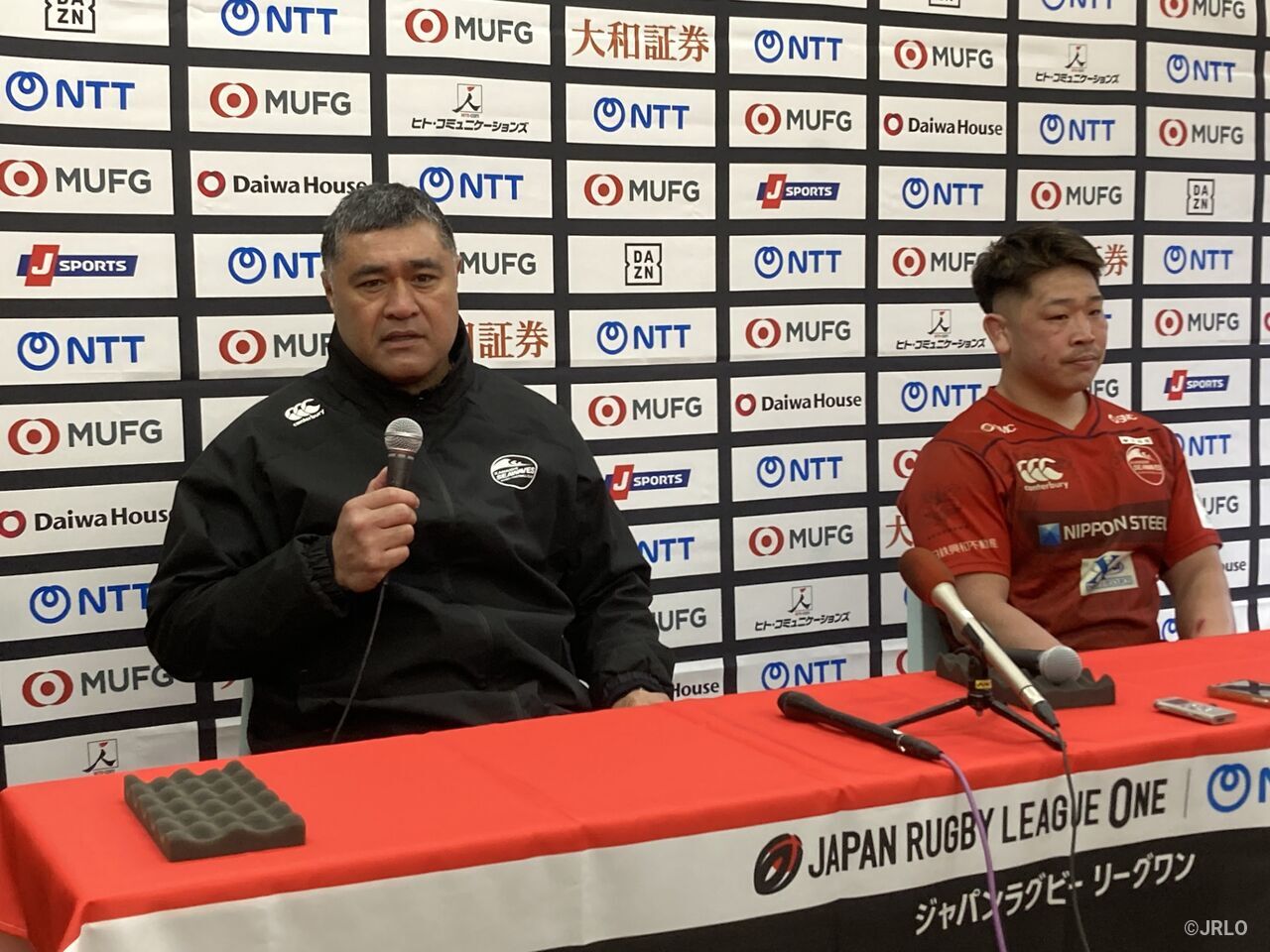 「みなさん、こんにちは。釜石SWは本当に良いラグビーをしていたと思います。エリアマネジメントやキックの使い方でも上回られていました。一方でわれわれは、キックすべき場面でボールを持ってしまったり、逆にランを使うべき場面でキックを蹴ってしまったりと、判断の部分でうまくいかない場面がありました。繰り返しになりますが、釜石SWさんはすごくいいラグビーをしていて、われわれはそこから学んだこともあります。特に今日のように風が強いコンディションの中で、どうゲームを進めていくかという理解がまだ足りなかったのかなと感じています」