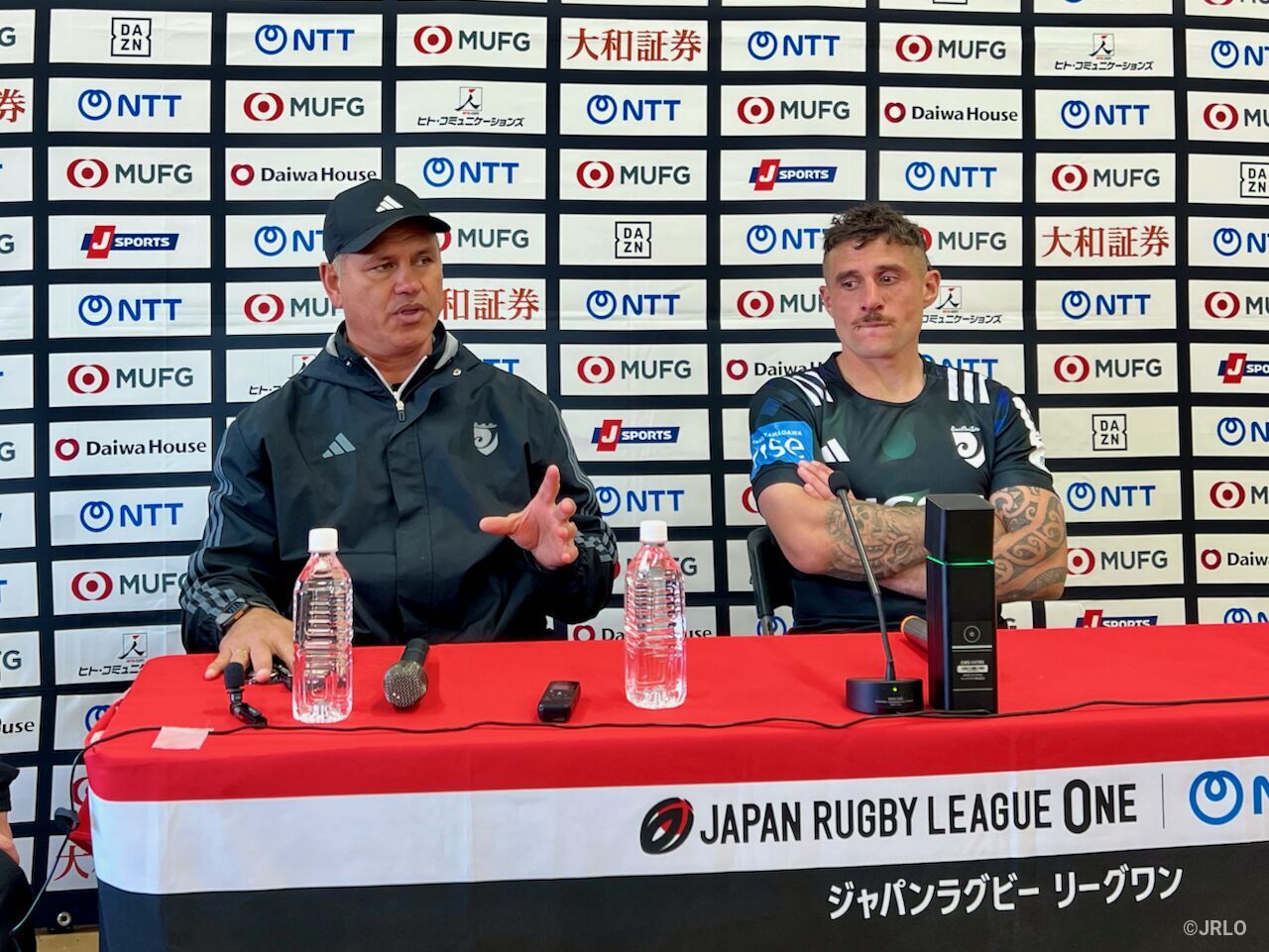 「相手チームも必死で、彼らにとっても重要な試合だったと思うので、スタートからフィジカル重視で攻められ、かなりドミネートされました。静岡ブルーレヴズ(以下、静岡BR)さんはほぼ狙いどおりのラグビーができていたんじゃないかと思います。とても危険なチームで、抑えることは本当に難しかったです。その中でもしっかりとカムバック(挽回)する方法を見つけてくれたチームを誇りに思います。順位表は関係なく、選手たちのプレーを見ていると、お互いに対してのコミットメント、そして、ネバーギブアップの精神を垣間見ることができて、本当に誇りに思います」