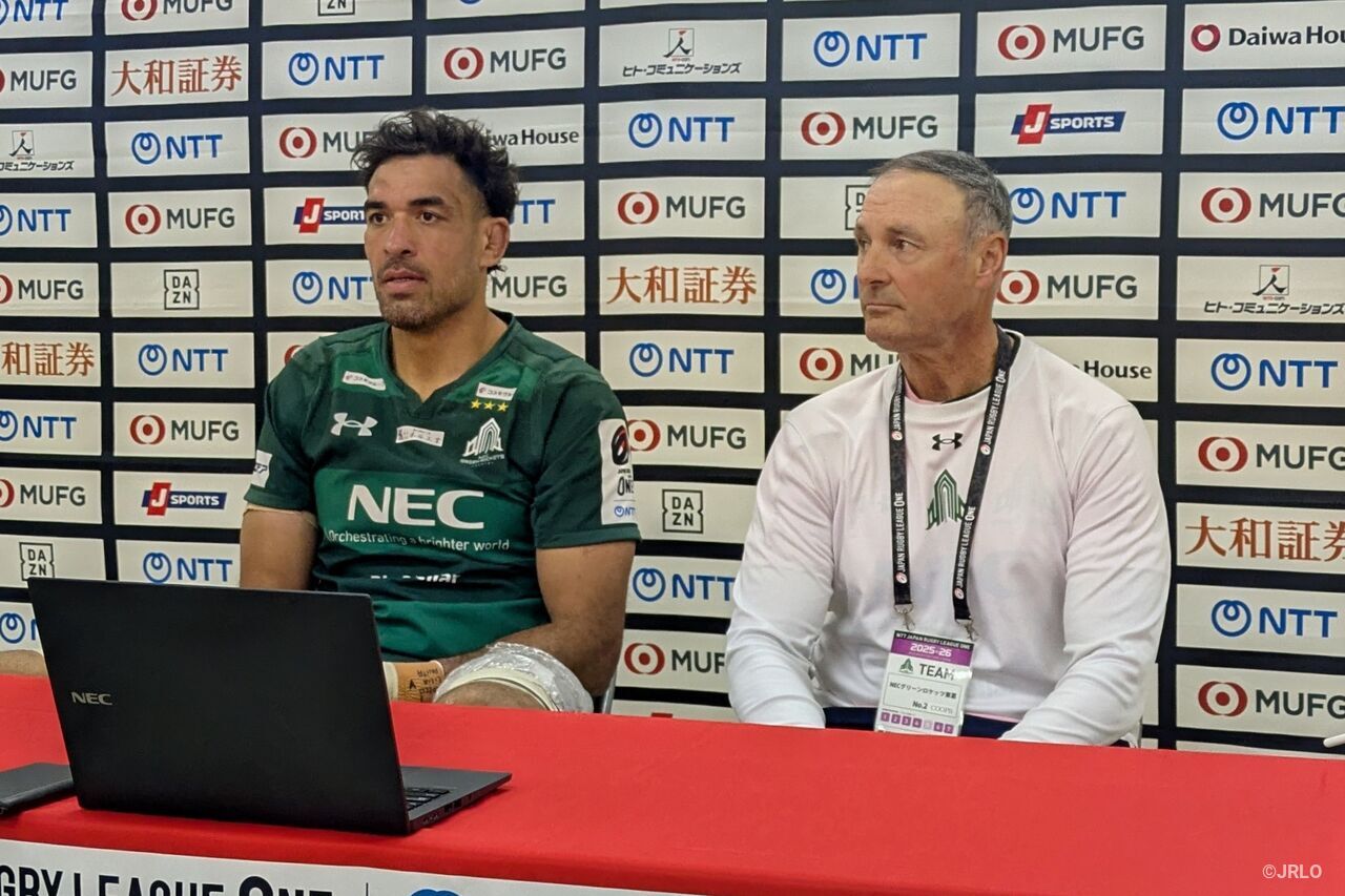 試合に関しては、アタッキングも目指しているものを出してくれていたと思うのですが、ディフェンスのコミットする力が素晴らしかったと思っています。特にトライラインの前で守るためにハードワークするところを体現できていました。信頼を取り戻すためには、ディフェンスで勇敢さを見せることが非常に大事だと感じていまして、それを今日、選手たちが体現してくれたと思います。コミットすることができていましたし、勇敢さを見せることができていたと思います」
