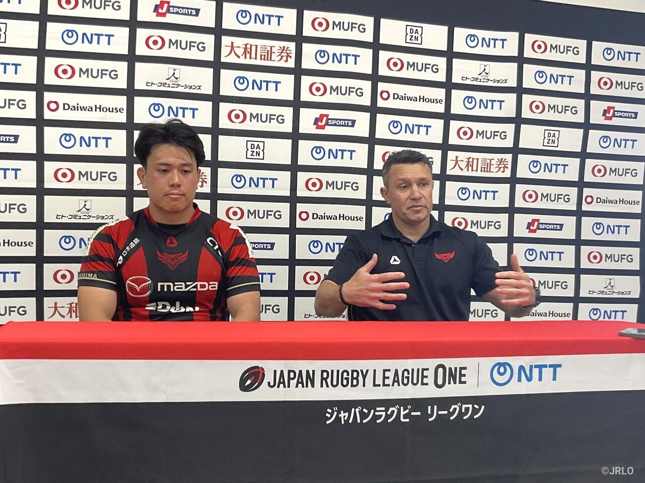 マツダスカイアクティブズ広島のダミアン・カラウナ ヘッドコーチ(右)、芦田朋輝キャプテンマツダスカイアクティブズ広島