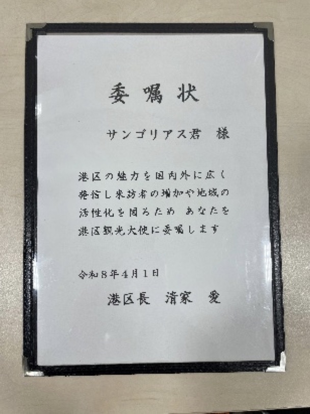 「この度、ぼく、サンゴリアス君が港区観光大使に就任しました!