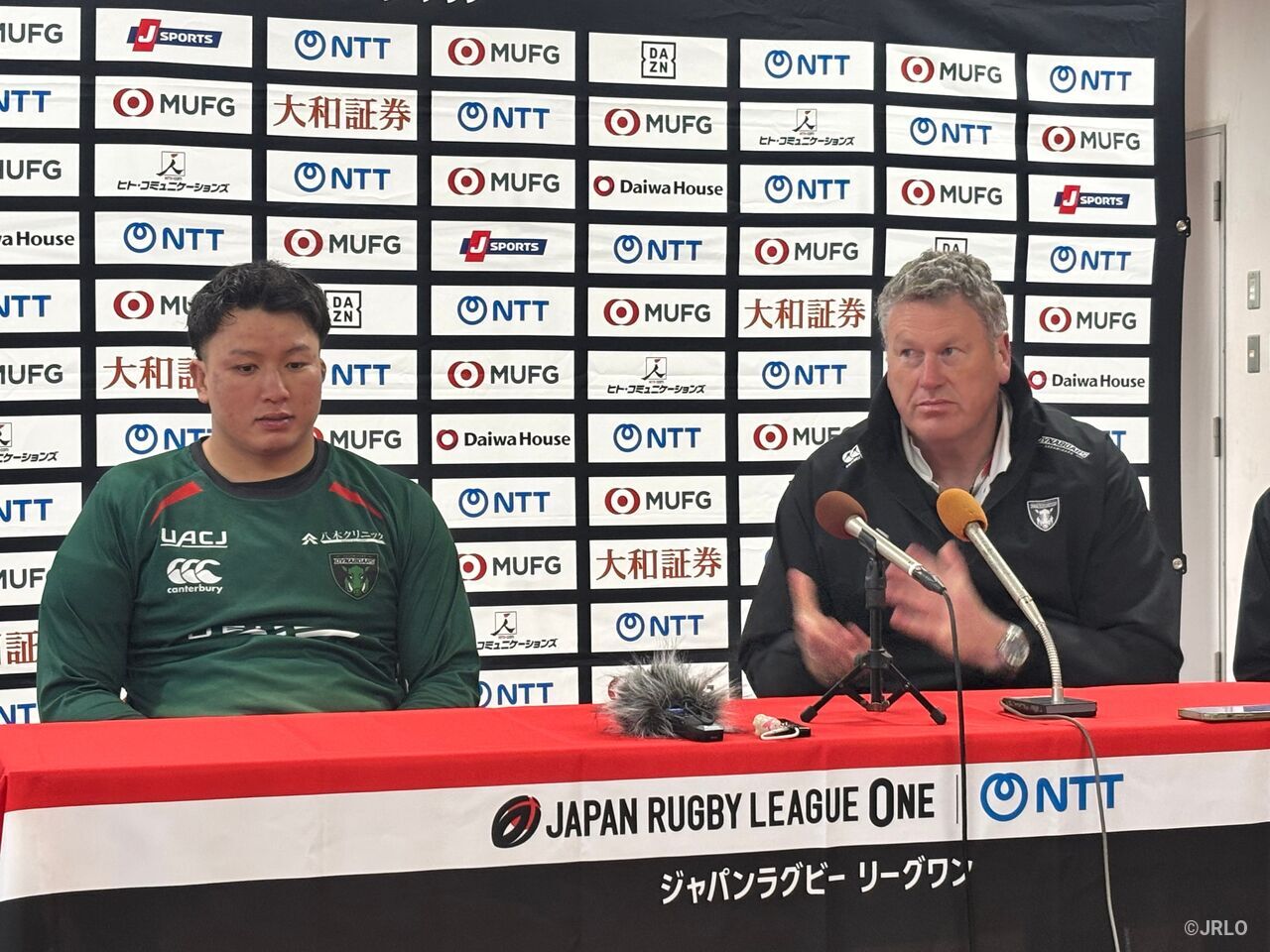 グレン・ディレーニー ヘッドコーチは、敗因の一つに規律の乱れを挙げた。前半は狙いどおりの展開でトライを量産したものの、後半の勝負どころでペナルティが重なり、静岡ブルーレヴズにスコアを積み上げられた。