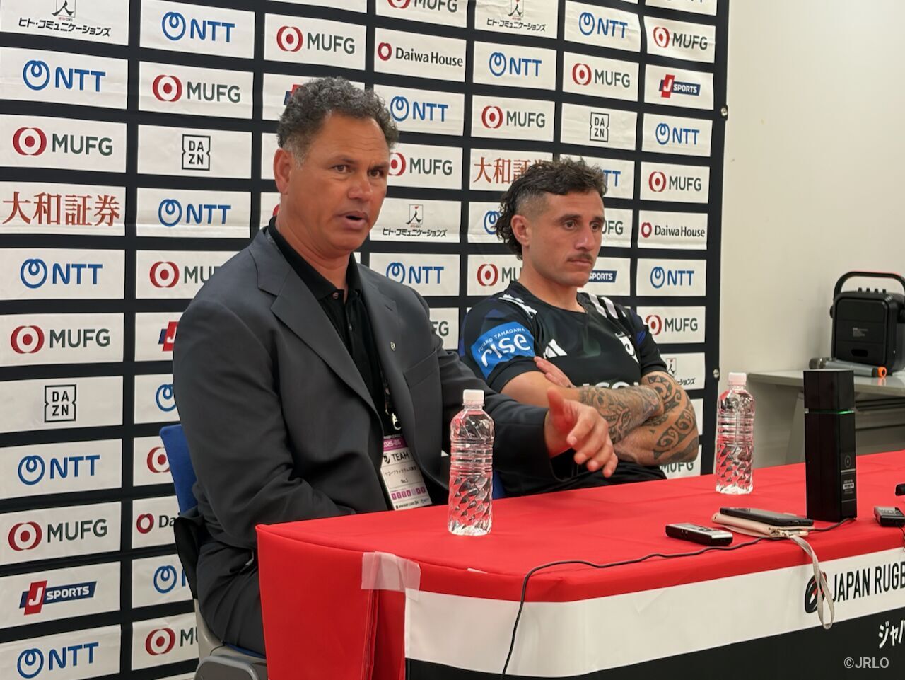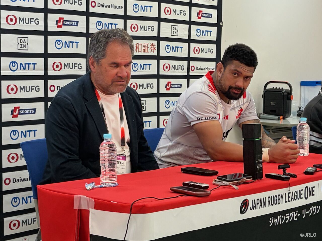 コベルコ神戸スティーラーズのデイブ・レニー ディレクターオブラグビー/ヘッドコーチ(左)、アーディ・サベア ゲームキャプテンコベルコ神戸スティーラーズ