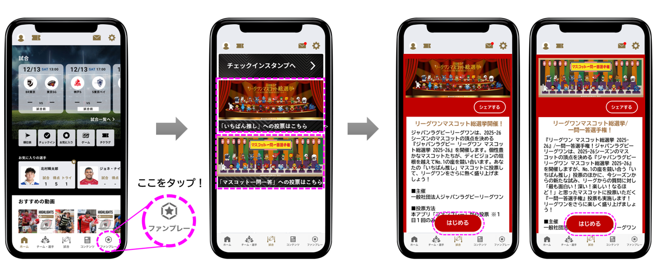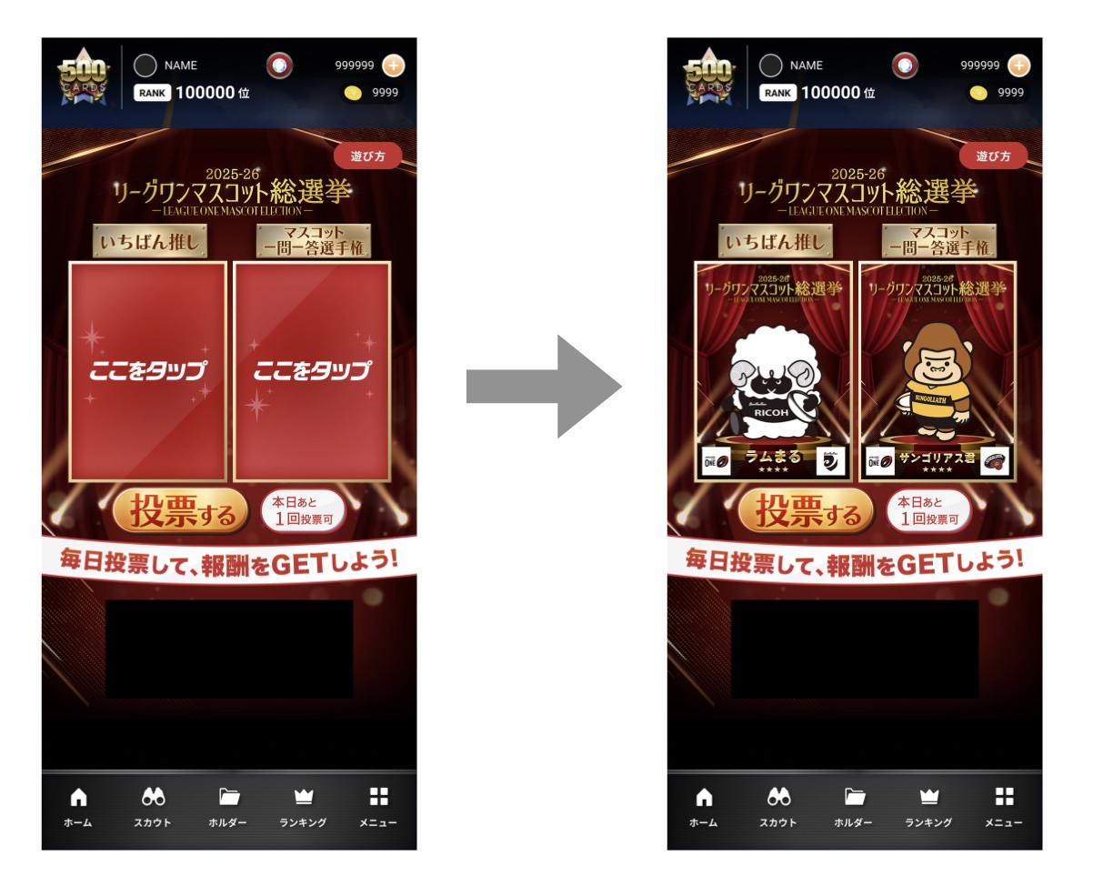 2025-26シーズンのマスコット総選挙は4月23日(木)から投票を開始し(デジタルトレーディングカードからの投票は27日(月)から)、5月11日(月)で締め切ります。投票結果は6月7日(日)にMUFGスタジアム(国立競技場)にて行われるNTTジャパンラグビー リーグワン2025-26 プレーオフトーナメント 決勝の会場にて発表します。