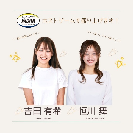 岩手県内のテレビやラジオ、イベントに多数出演の人気タレント 吉田有希さんと恒川舞さんが来場し、開門時のお出迎えや応援レクチャーに登場。一緒にシーウェイブスを応援しましょう!