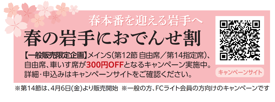 - 自由席シニアサンクスは70歳以上の方が対象です。当日ご入場の際に身分証をご提示いただくことがあります。