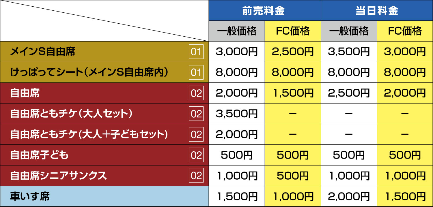 - ご観戦の未就学児童は、大人1名につき1名まで膝上観戦無料。座席をご利用になる場合は、お一人様につき1枚のチケットが必要となります。