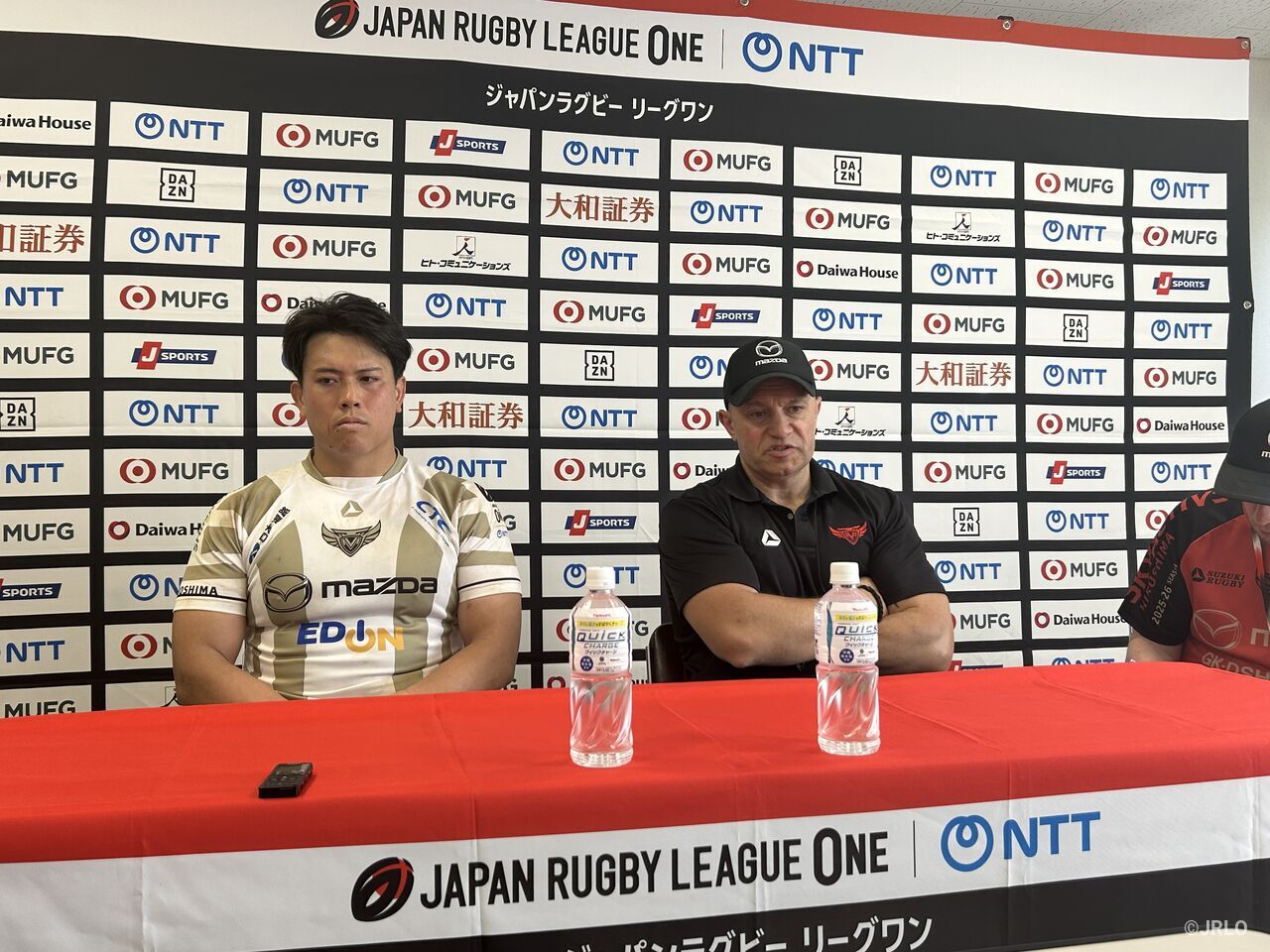 「まず、試合開催にあたりご尽力いただいた皆さまに感謝申し上げます。特にマツダスカイアクティブズ広島(以下、SA広島)の皆さま、ありがとうございました。今週のテーマとして、選手全員が自分の仕事を100%やり切ることを設定していました。試合内容は、前節できたことが今日はできていなかったり、前節できなかったことが今日はできていたりと、良いところと悪いところがたくさん出た試合だったと思います。試合の流れとしては、SA広島さんの重いフォワードにゴール前でゴリゴリと押し込まれてトライを奪われるシーンもありましたが、中盤ではいい戦いができた場面も多く、残り3試合につながるゲームができたと考えています」
