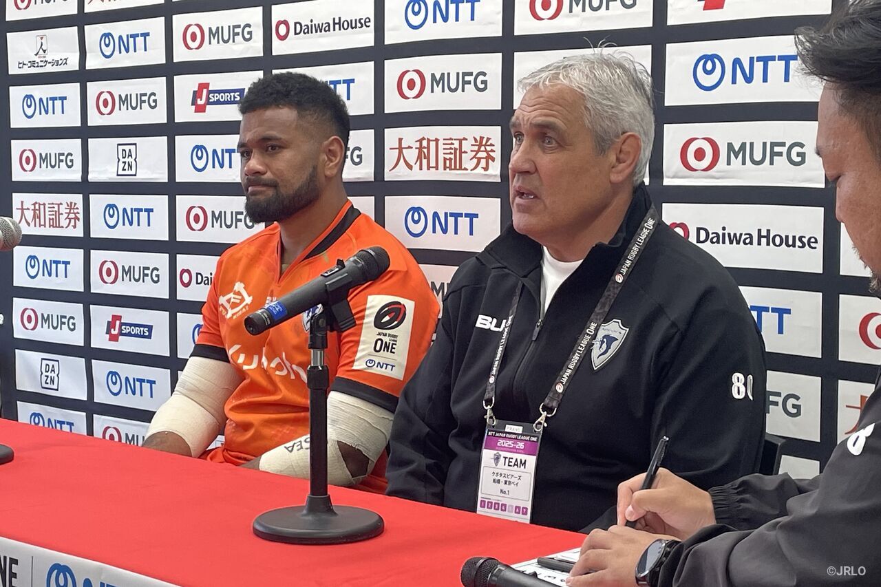 「明らかに選手たちにとっては厳しい1日となりました。前半、ハンドリングや正確性に欠ける部分があり、自分たちの首を絞めてしまったと感じています。ハーフタイム直前、オフサイドやレッグリフトのペナルティを与えてしまい、そこから追加で7失点したことが大きな打撃となりました。後半は30対21まで追い上げ、自分たちのペースに戻せた場面もありました。チャンスも何度かありましたが、それを決め切ることができず、最後の7、8分で相手に数本のトライを許し、スコアを広げられてしまいました。選手たちの努力は誇りに思いますし、残りの数試合に向けて積み上げていける手ごたえは得られました」